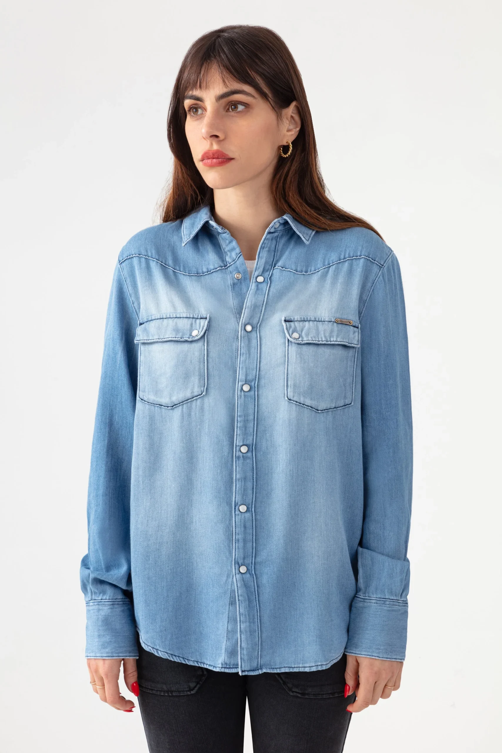 Explorez l’essence du style « western » avec la chemise Clyde, un classique emblématique de la marque. La coupe droite et les manches longues à boutons au poignet confèrent une allure authentique, idéale pour varier vos looks. La fermeture par boutons-pression et les deux poches poitrine ajoutent une touche pratique et stylée à cette chemise intemporelle.