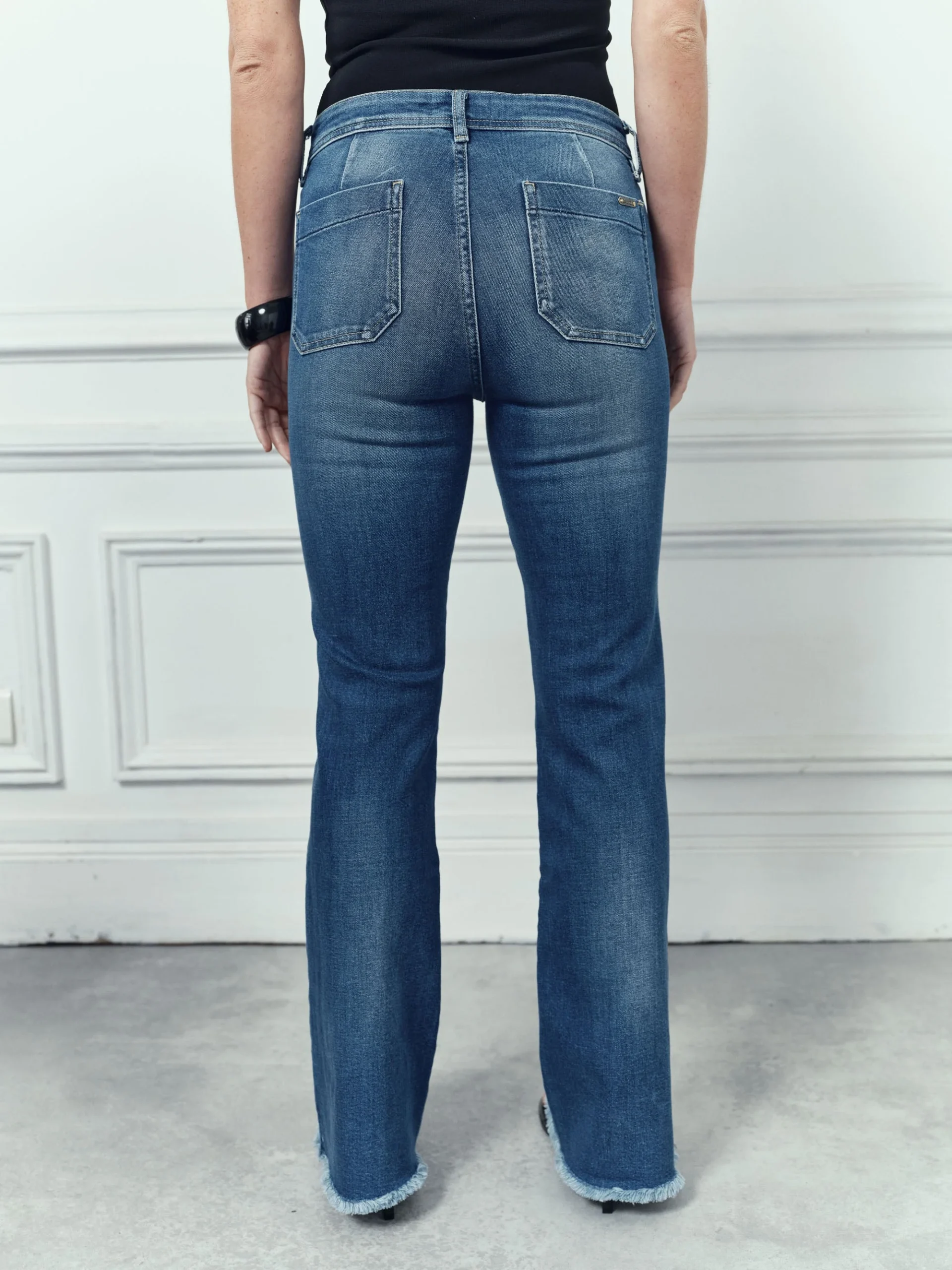 Explorez le confort stylisé avec notre jean Carlotta cropped en coton stretch, une variation du classique Charlotte. Son bas légèrement évasé, coupé à raz sans ourlet, ajoute une touche moderne. Les petites poches plaquées complètent ce jean, idéal pour un look décontracté et chic.