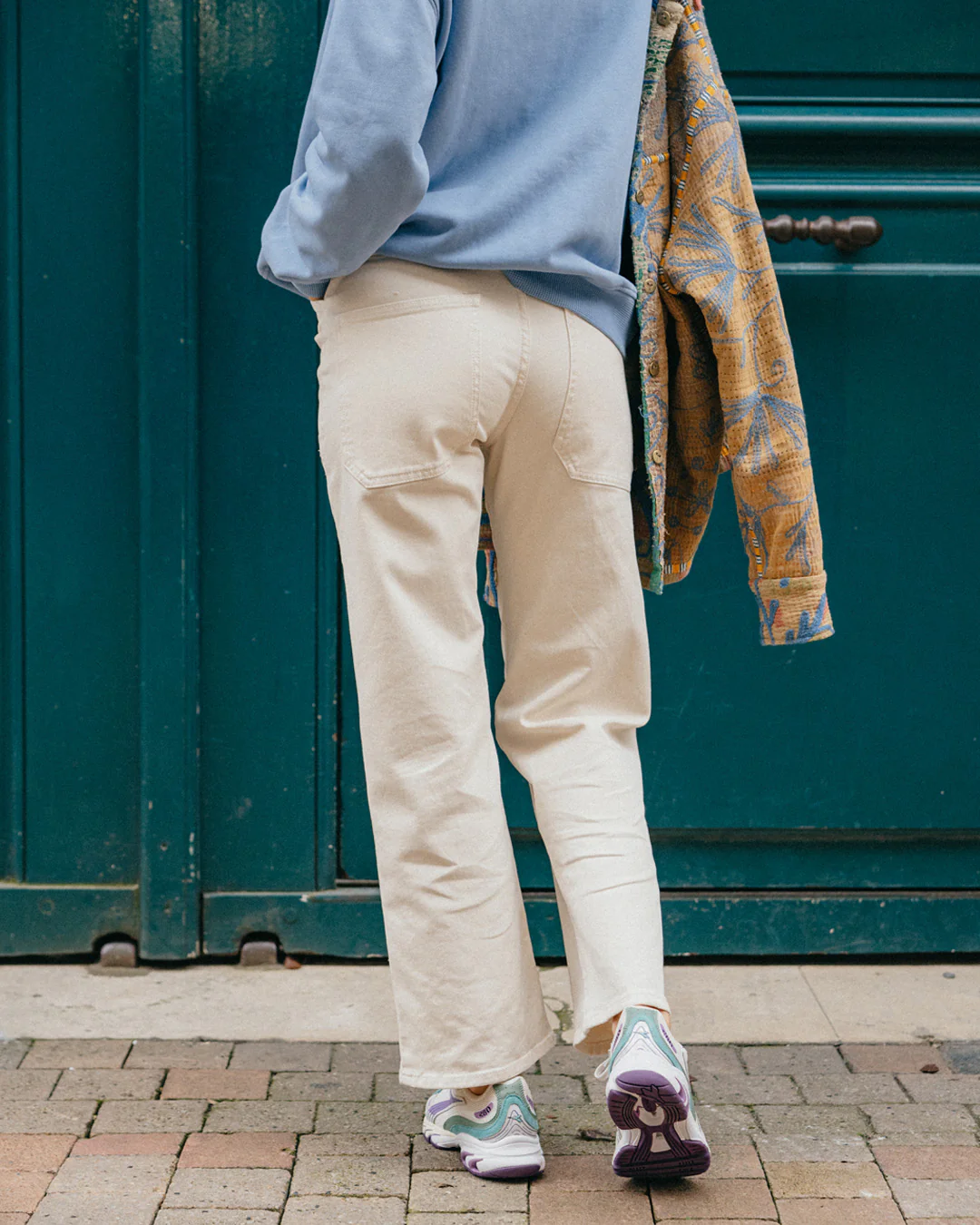 Le parfait jean Eddy en 100% coton écru. Deux grandes poches plaquées à l’avant et deux poches classiques à l’arrière. Le jean Eddy a une coupe droite longueur cheville. Théophanie mesure 1m61 et porte un 25. Sa taille habituelle est un 23, le pantalon est sur taillé sur les photos.