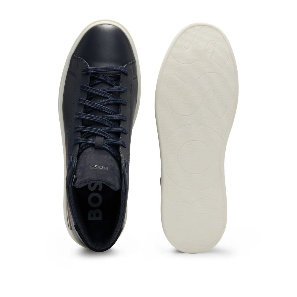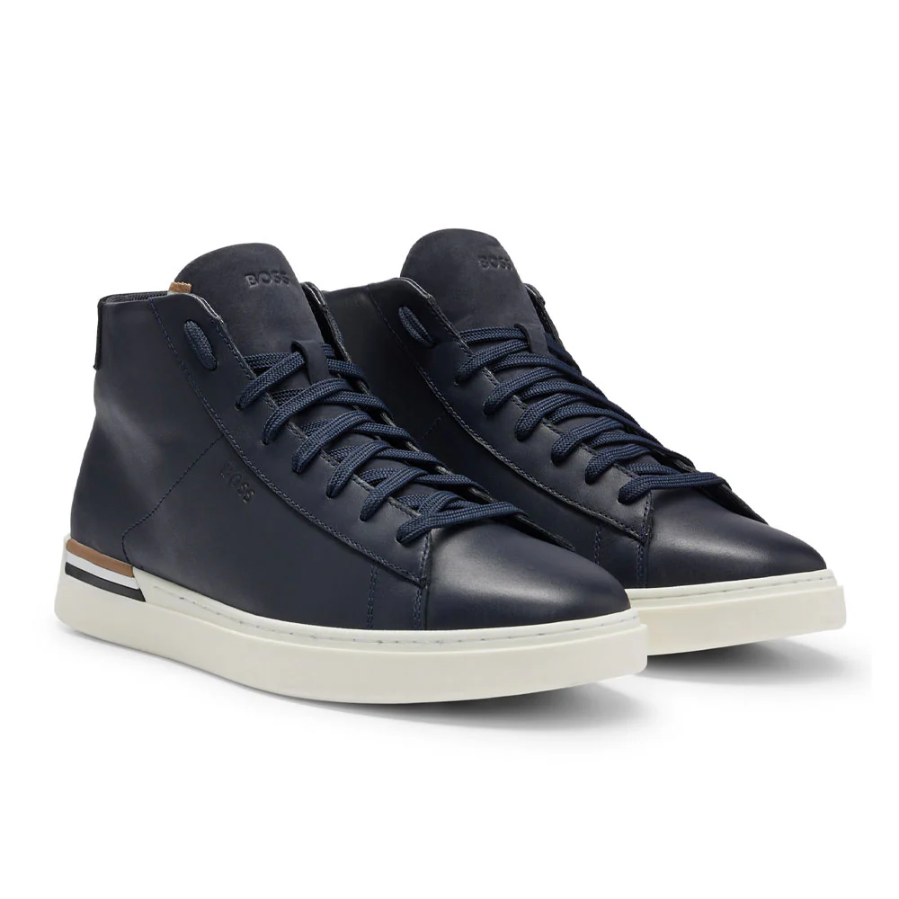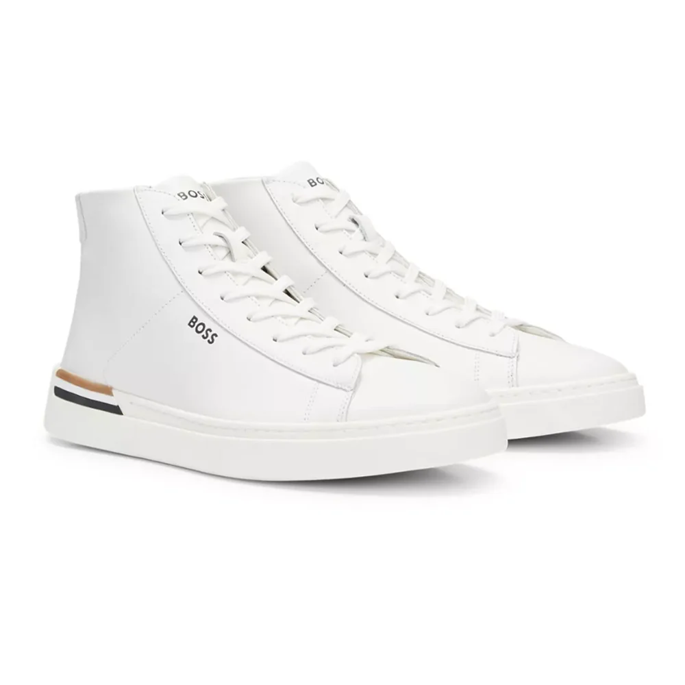 Baskets montantes polyvalentes par BOSS, confectionné en cuir et nubuck avec une bande emblématique sur la semelle latérale.