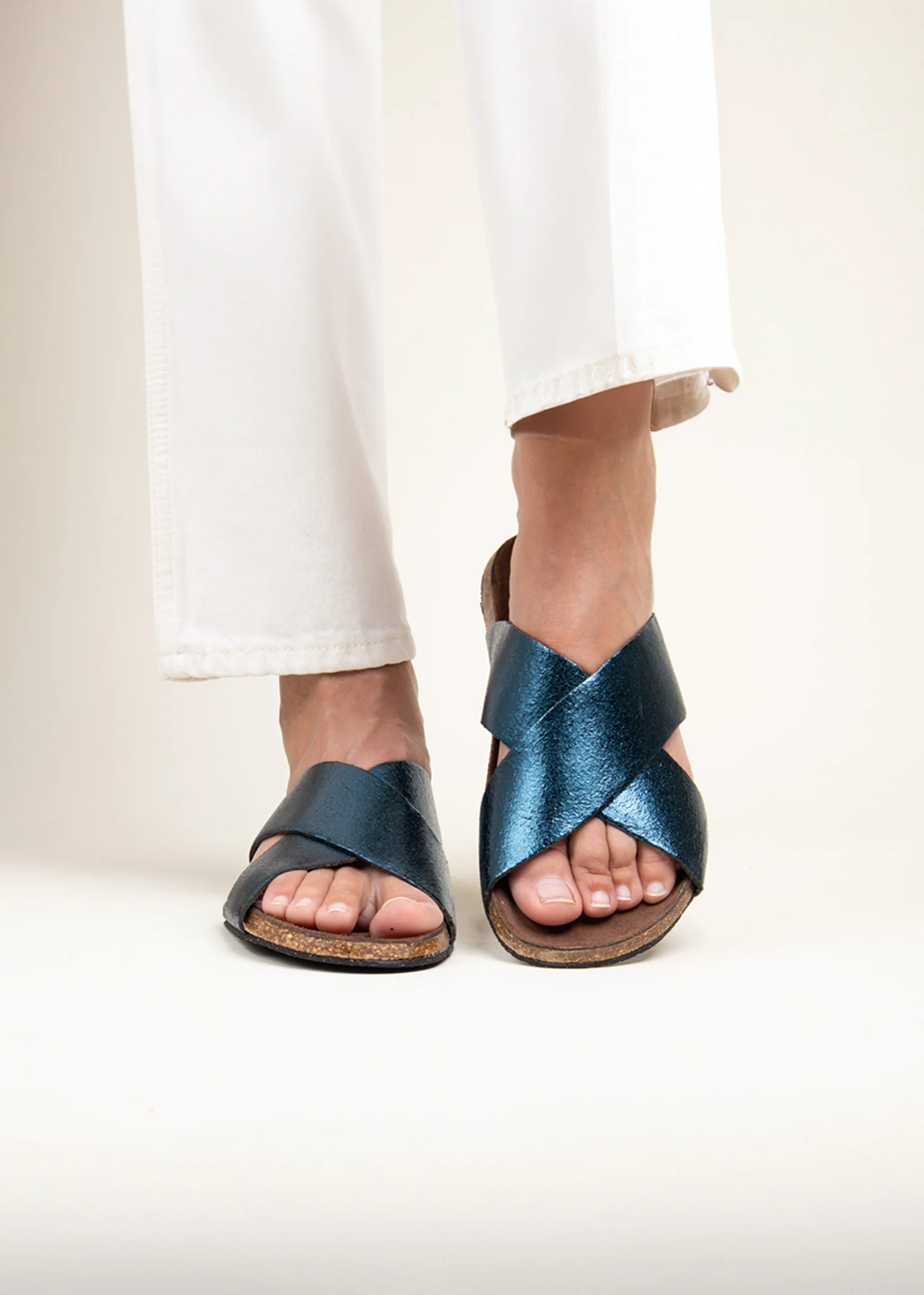 Rock, les deux brides entrecroisées font toute l’élégance de la chaussure qui affine et habille votre pied. Sa semelle liège est robuste et offre un très grand confort en toute circonstance.