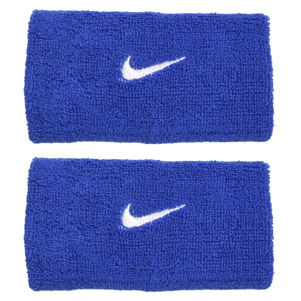 Le bracelet double largeur Nike Swoosh est fabriqué à partir d’un mélange absorbant de coton/nylon/élasthanne avec Nike Swoosh brodé. 2 par paquet. 5 pouces.
