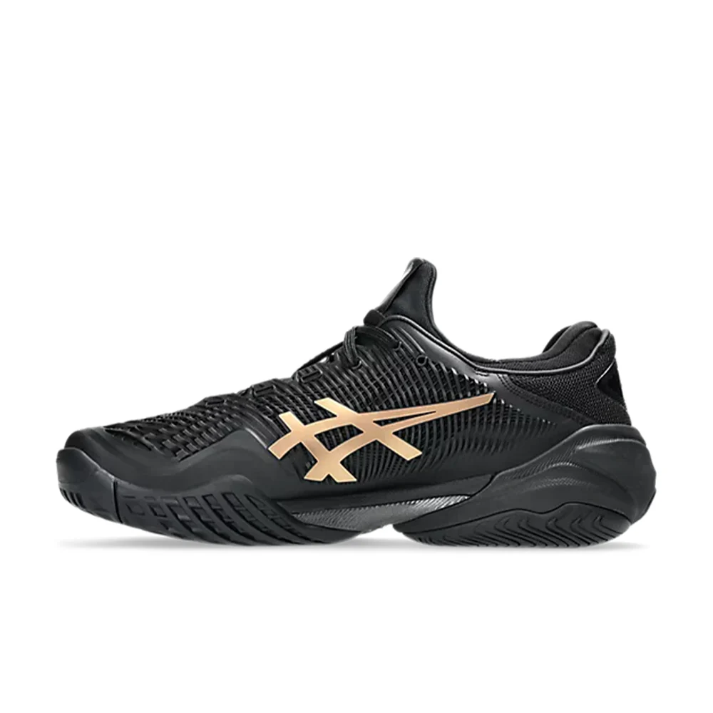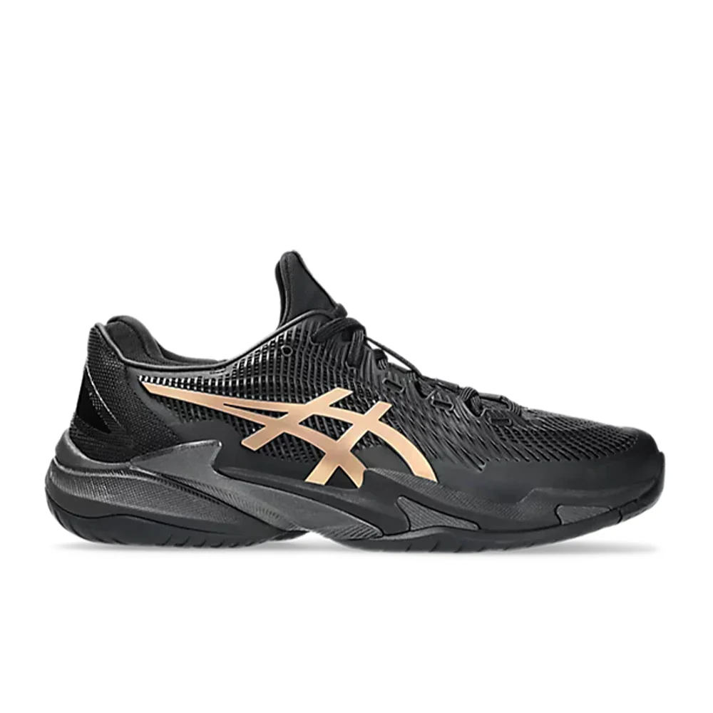 Les chaussures de tennis COURT FF™ 3 NOVAK NIGHT ENERGY sont conçues pour vous aider à améliorer vos swings et à récupérer plus rapidement entre chaque coup. Leur palette de couleurs principalement noire est contrastée par des touches de doré prisme.