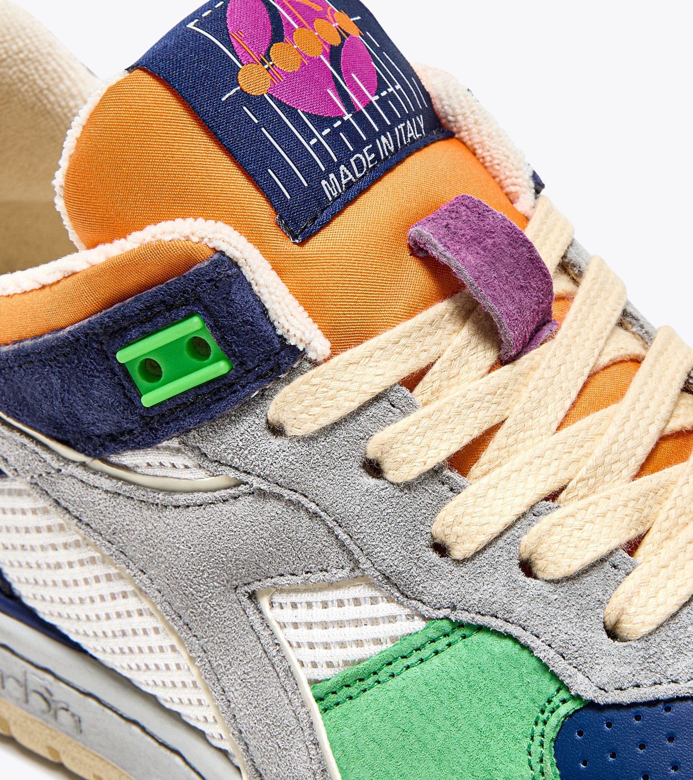 Lancée dans les années 90 comme chaussure de tennis pour les professionnels, elle fait aujourd’hui son grand retour pour conquérir de nouveaux terrains de jeu. La B.560 a fait son grand retour dans la maison Diadora, portant avec elle tout le charme et le style d’une icône sportive des années 90. D’inspiration rétro-tennis, ces sneakers reprennent les éléments et l’esthétique des chaussures performances de l’époque, dans une silhouette inédite avec des jeux de lignes révolutionnaires.