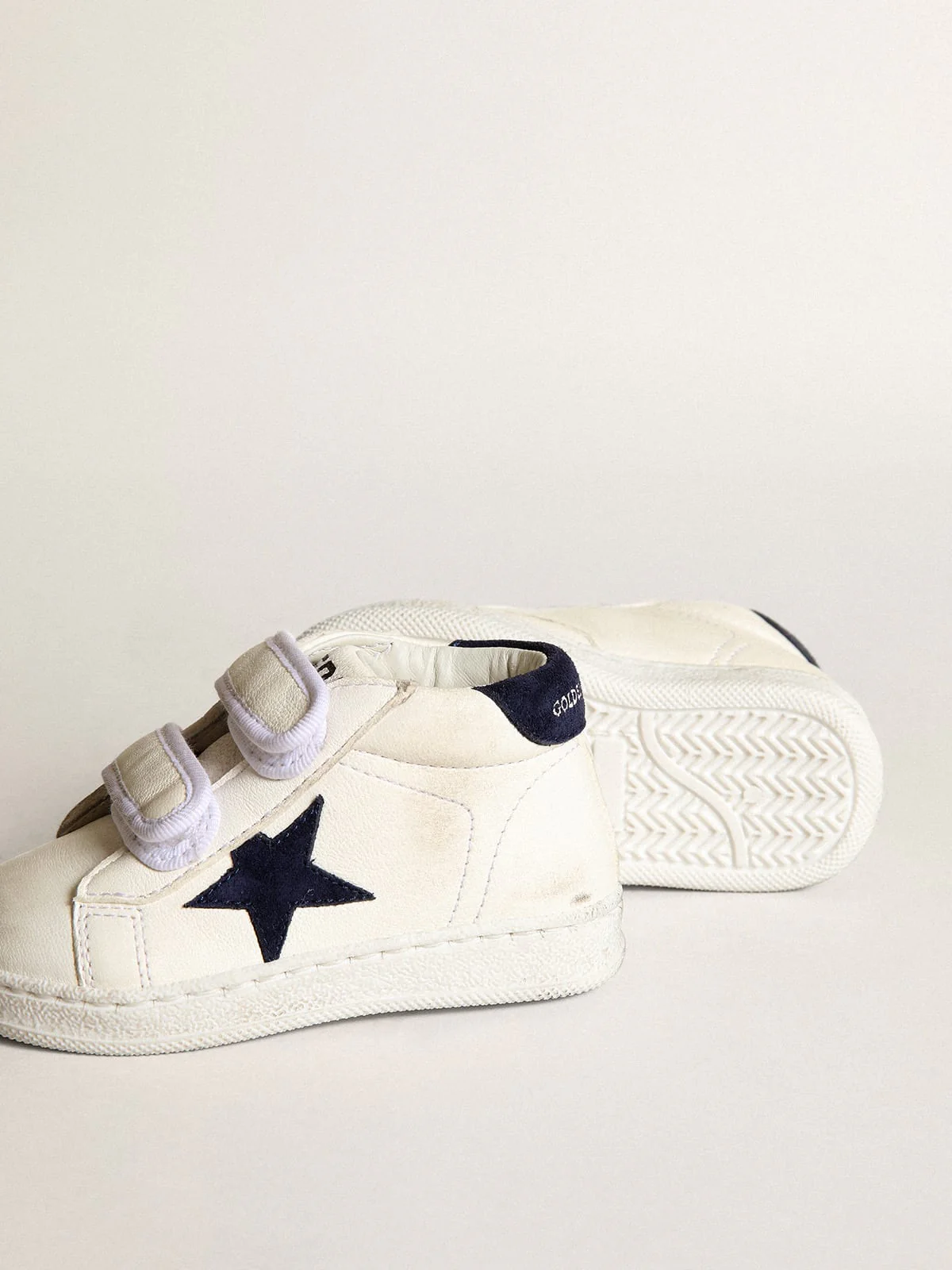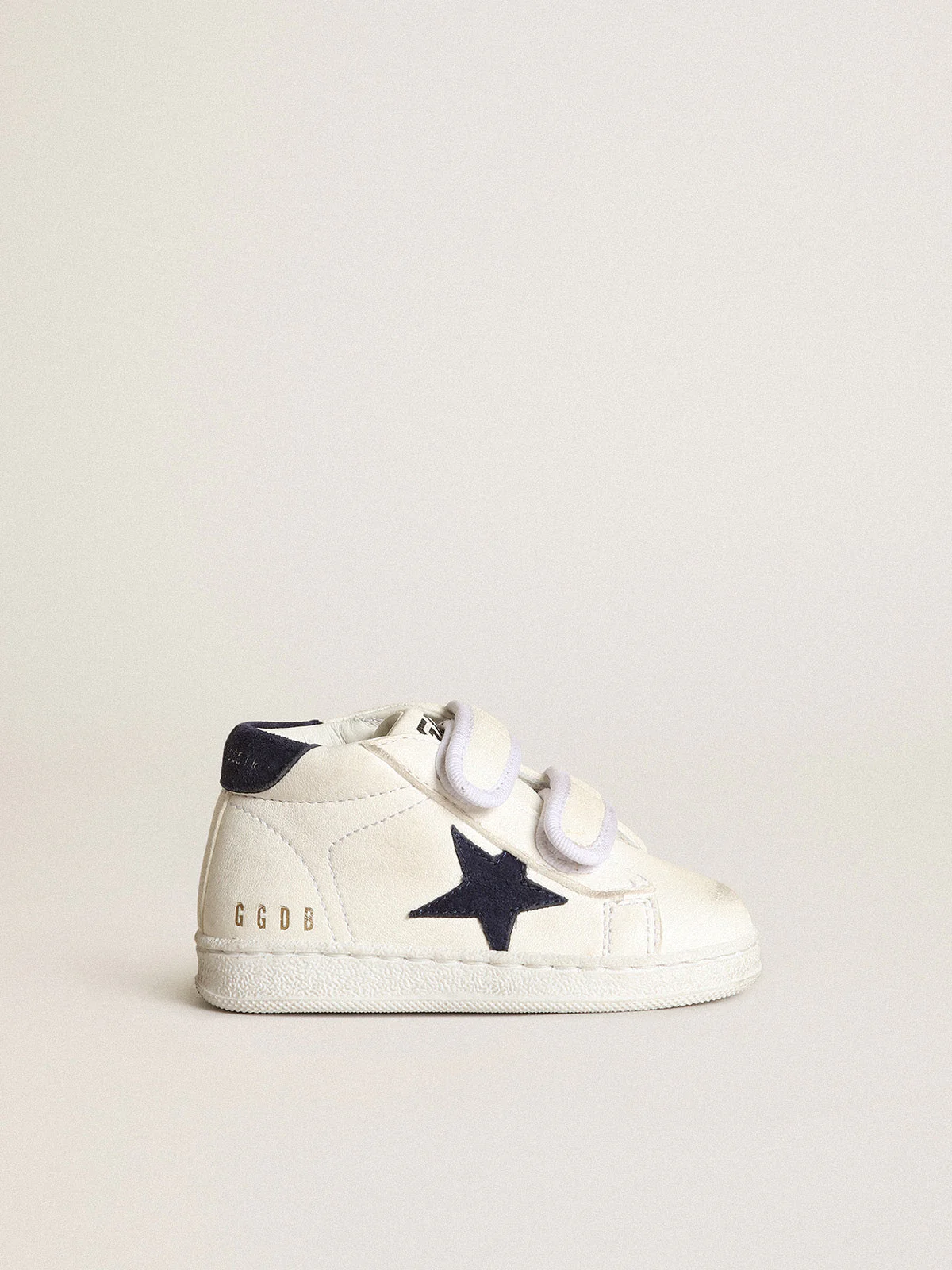 Nos sneakers Golden Goose June en version Junior sont dotées de deux bandes avec fermeture à scratch sur le devant. Ce modèle, rehaussé d’une tige en cuir nappa blanc, se distingue par une étoile et un contrefort en daim bleu foncé.