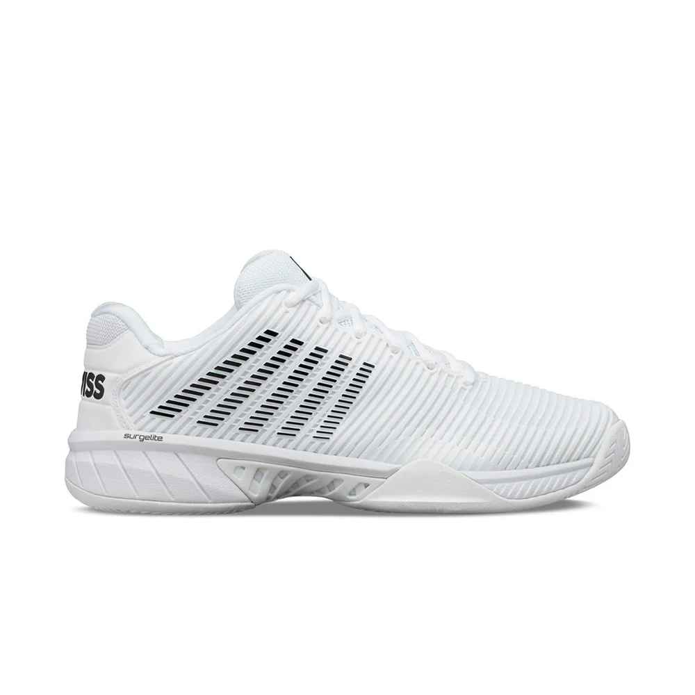 Comment K-Swiss améliore-t-elle encore son modèle de chaussures le plus vendu ? En ajoutant la technologie de semelle intermédiaire Surgelite, l’Hypercourt Express 2 devient encore plus légère et confortable tout en conservant sa respirabilité et son ajustement généreux. De plus, la marque présente Durawrap Flex, offrant à la chaussure plus de soutien sans période de rodage. Le nouveau design de la tige rend instantanément le modèle frais et moderne, ce qui impressionnera les joueurs de tennis actuels et nouveaux qui portent la chaussure. Idéal pour les surfaces de jeu en dur ou en terre battue.