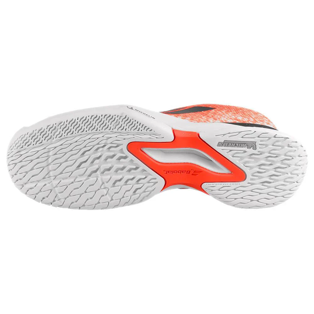 Babolat a doté l’empeigne d’un mesh ultra-léger pour un roulement naturel avec plus de boost car la semelle a été repensée pour répondre plus précisément aux exigences du jeu : la surface de roulement a été augmentée dans les zones les plus abrasées et réduite en les zones les moins sollicitées.