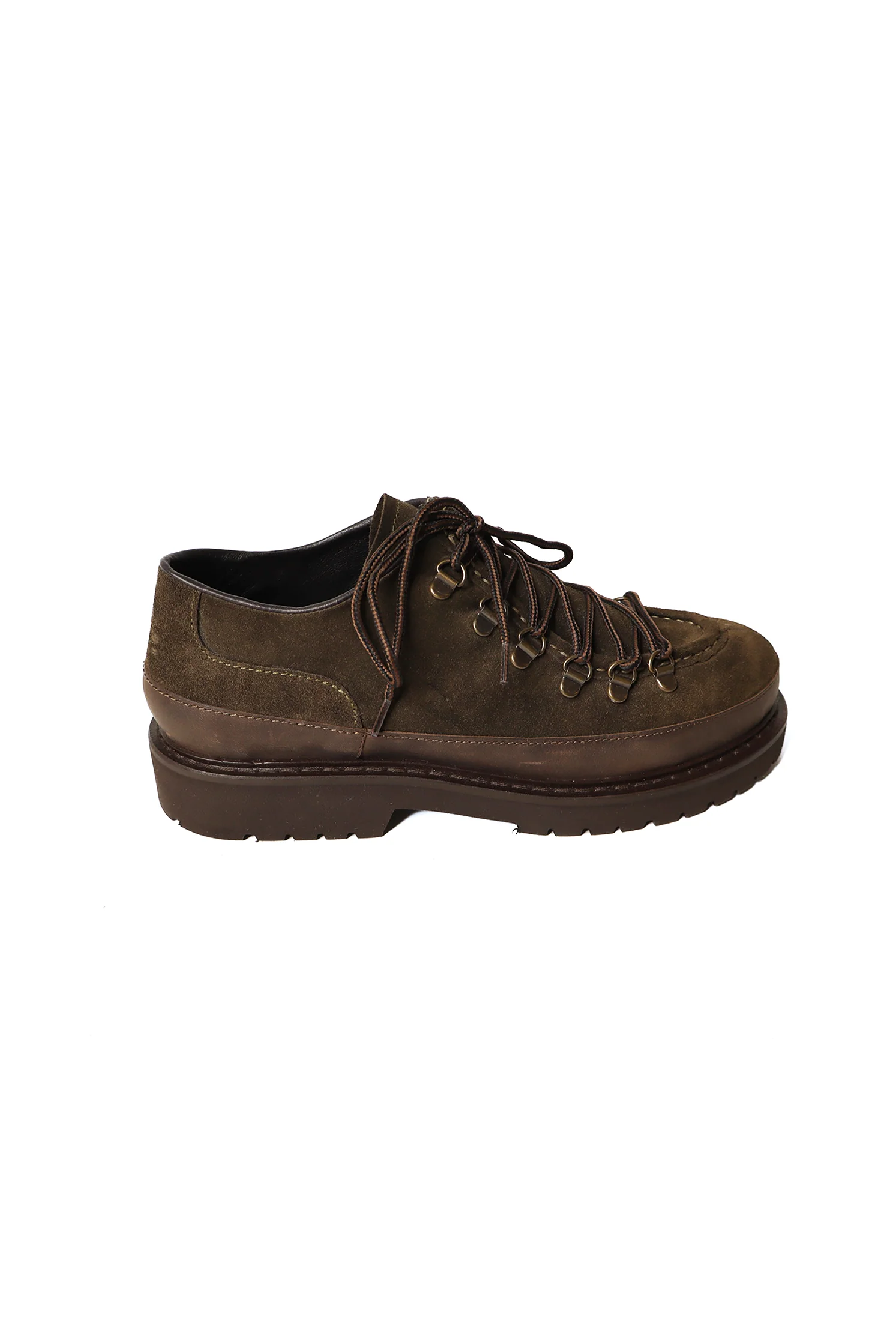 La Merano Olive Shell de Kjøre Project est une nouvelle chaussure élégante et ultra-légère, dotée de semelles en EVA (éthylène-acétate de vinyle) souple et écologique. Fabriquée artisanalement à partir de cuir néo-zélandais de première qualité, elle est entièrement doublée de cuir naturel souple et possède des lacets en coton.