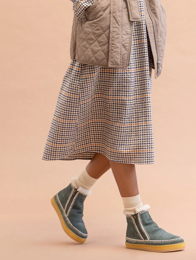 Bottines classiques en daim vert bouteille avec fermeture éclair latérale, faites à la main, avec détails au crochet en naturel. Fabriqué artisanalement Tige en daim Doublure en peau de mouton Semelle intérieure en peau de mouton Hauteur du dossier 13,5 cm (taille 38) Semelle intérieure en crêpe naturel avec semelle extérieure en caoutchouc Nos bottes […]