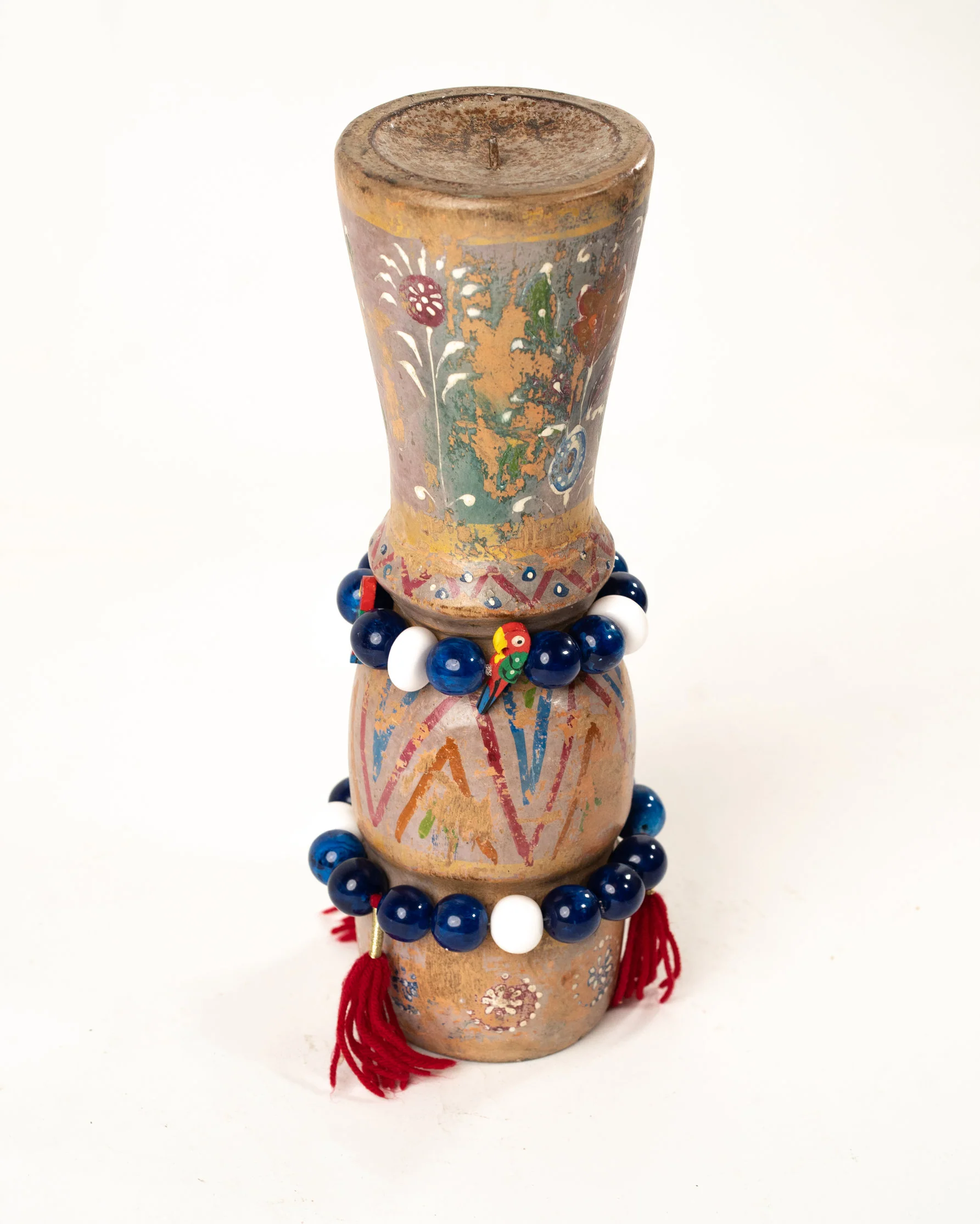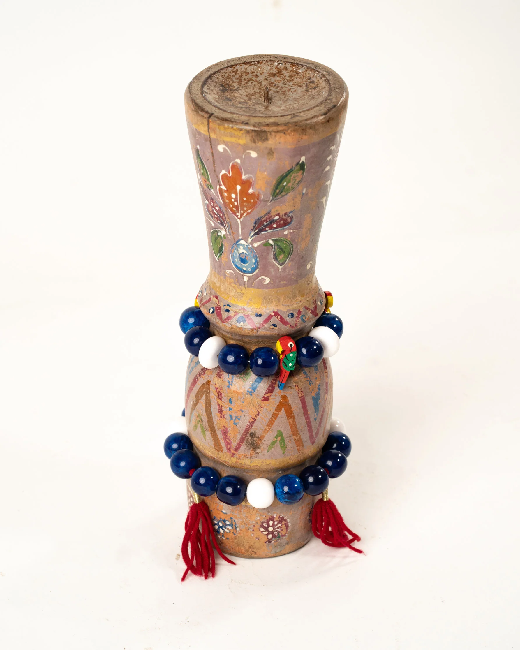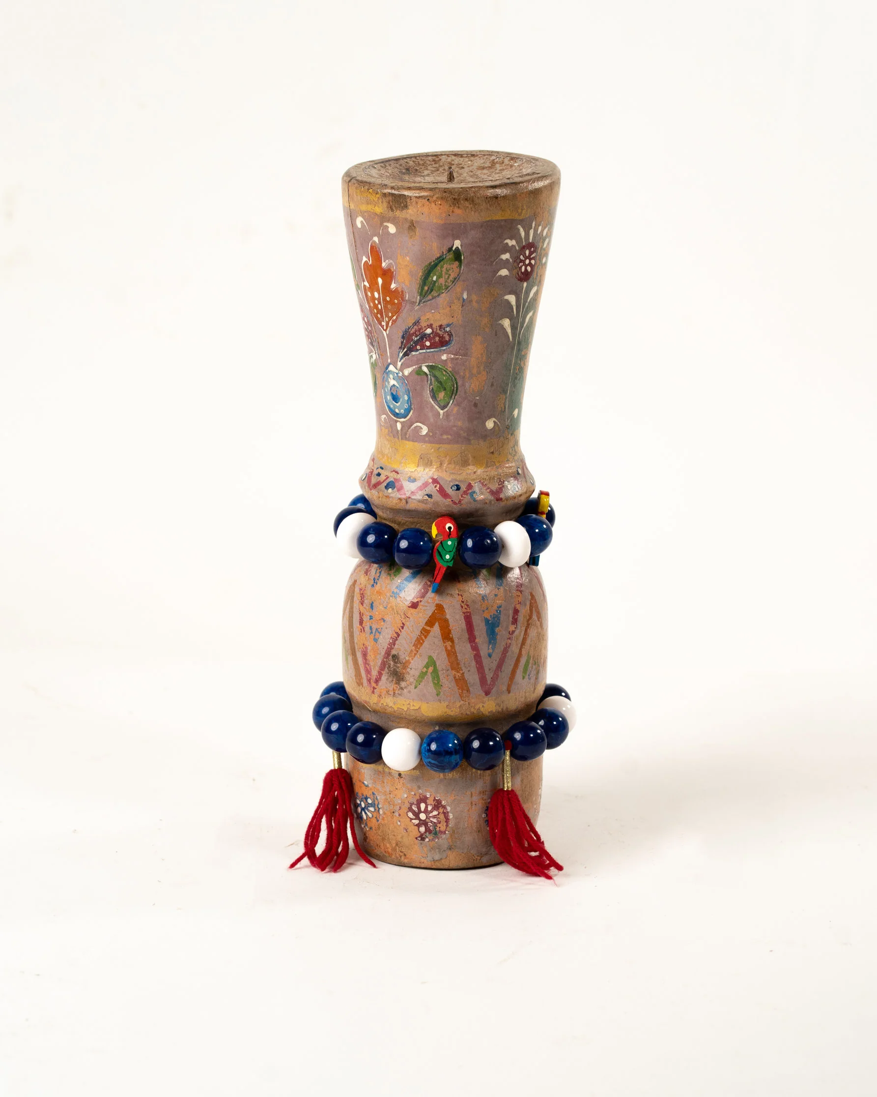 Apportez une touche de charme et de caractère à votre intérieur avec ce bougeoir artisanal en bois d’acacia, fabriqué à la main à Jodhpur, au Rajasthan. Chaque bougeoir est sculpté avec soin par des artisans locaux, mettant en valeur la beauté naturelle et les veines uniques du bois d’acacia. Ce modèle se distingue par son effet vintage, délibérément créé pour lui conférer une allure intemporelle et élégante. La peinture à la main, avec des teintes subtilement vieillies, renforce son aspect patiné, évoquant l’authenticité et le raffinement des objets anciens. Ce bougeoir ajoute une ambiance chaleureuse et nostalgique à votre décoration, qu’il soit posé sur une table, une étagère ou un meuble d’appoint. Un véritable chef-d’œuvre artisanal, parfait pour ceux qui recherchent une pièce unique, pleine de caractère et d’histoire.