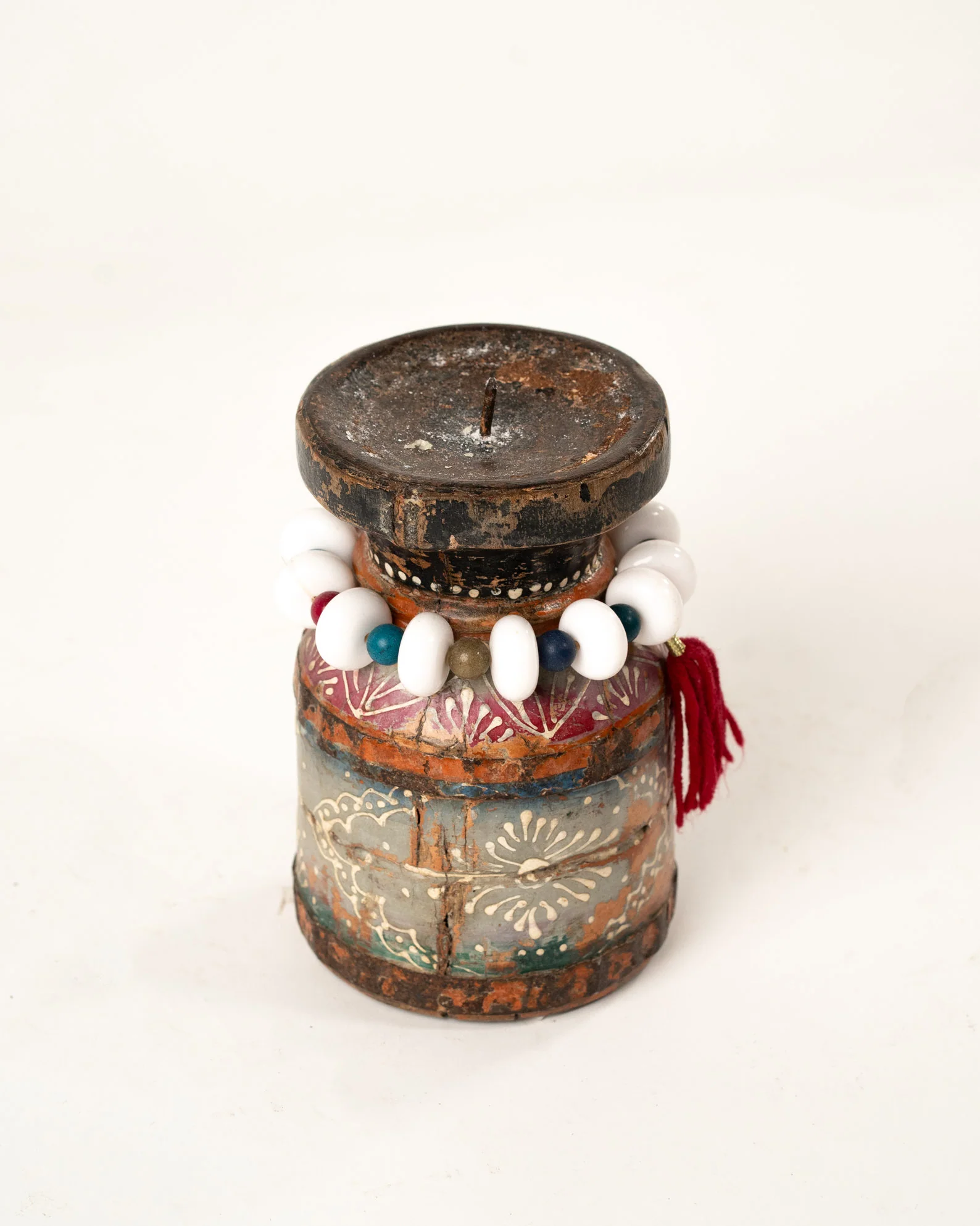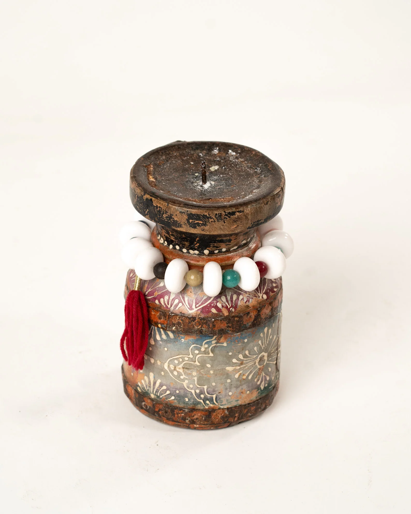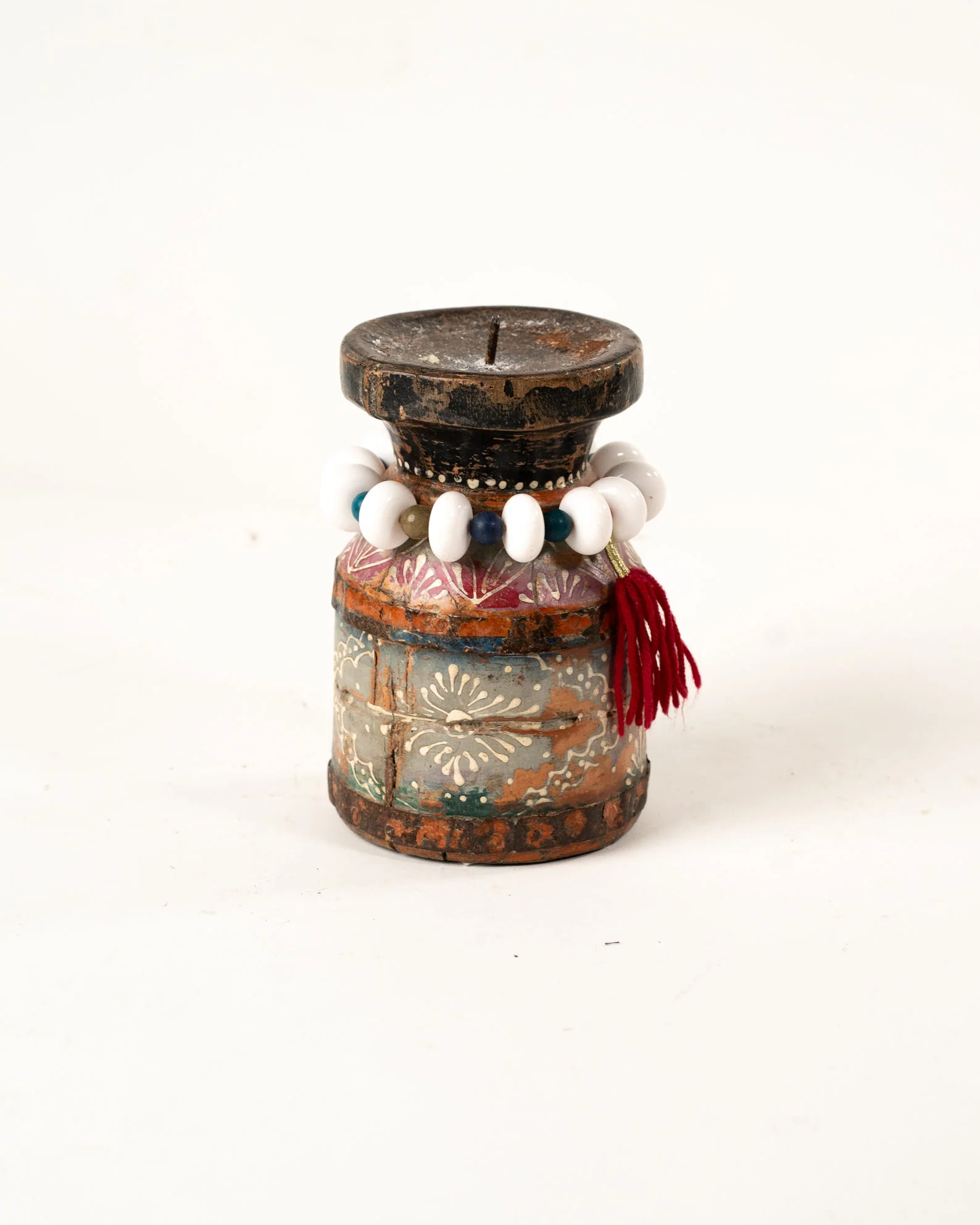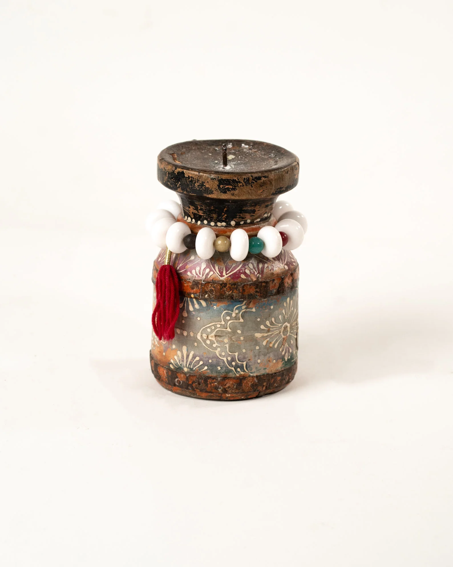 Apportez une touche de charme et de caractère à votre intérieur avec ce bougeoir artisanal en bois d’acacia, fabriqué à la main à Jodhpur, au Rajasthan. Chaque bougeoir est sculpté avec soin par des artisans locaux, mettant en valeur la beauté naturelle et les veines uniques du bois d’acacia. Ce modèle se distingue par son effet vintage, délibérément créé pour lui conférer une allure intemporelle et élégante. La peinture à la main, avec des teintes subtilement vieillies, renforce son aspect patiné, évoquant l’authenticité et le raffinement des objets anciens. Ce bougeoir ajoute une ambiance chaleureuse et nostalgique à votre décoration, qu’il soit posé sur une table, une étagère ou un meuble d’appoint. Un véritable chef-d’œuvre artisanal, parfait pour ceux qui recherchent une pièce unique, pleine de caractère et d’histoire.