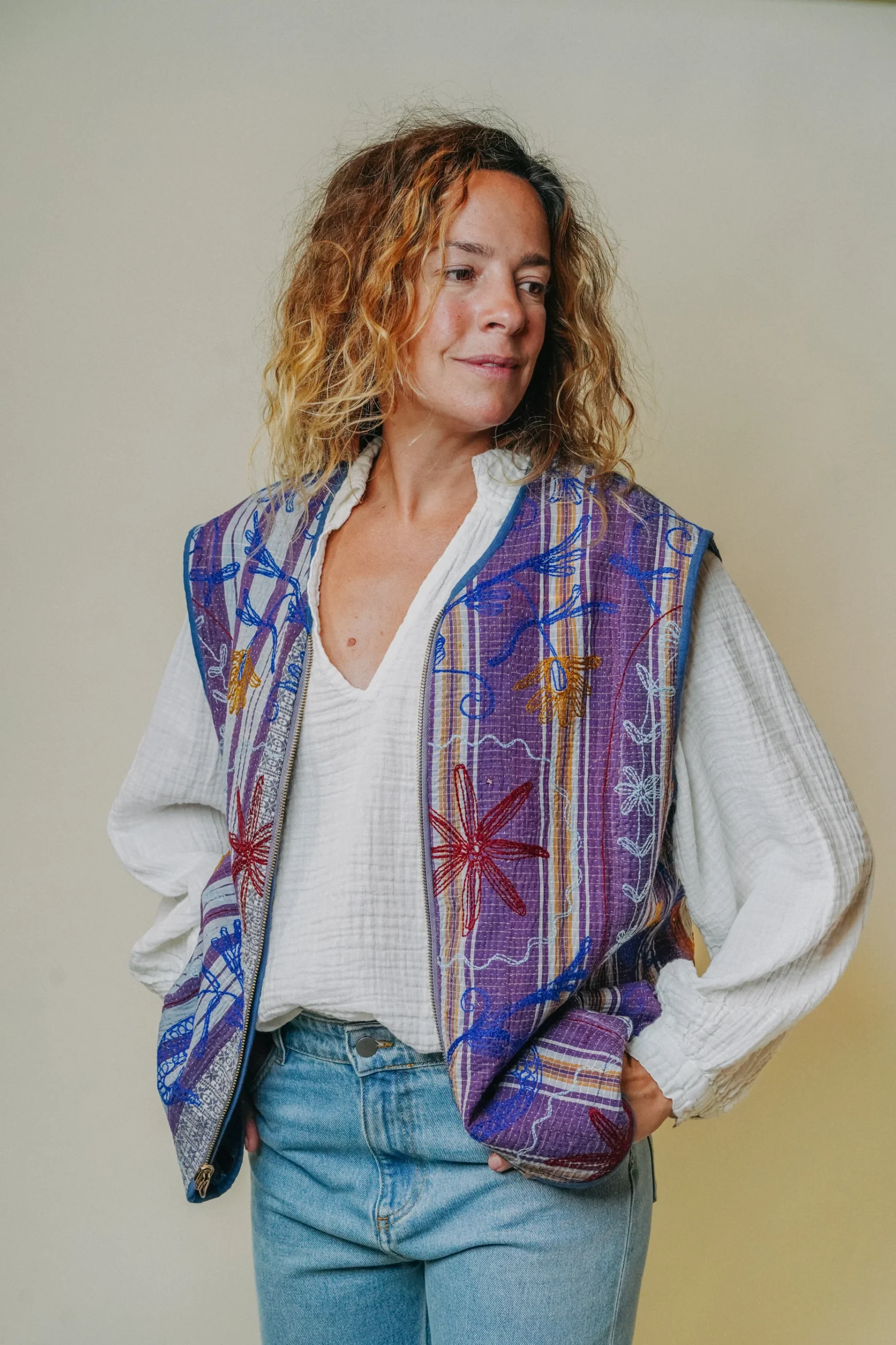 La dernière création L’Île Bleue : le gilet en kantha Arthur.