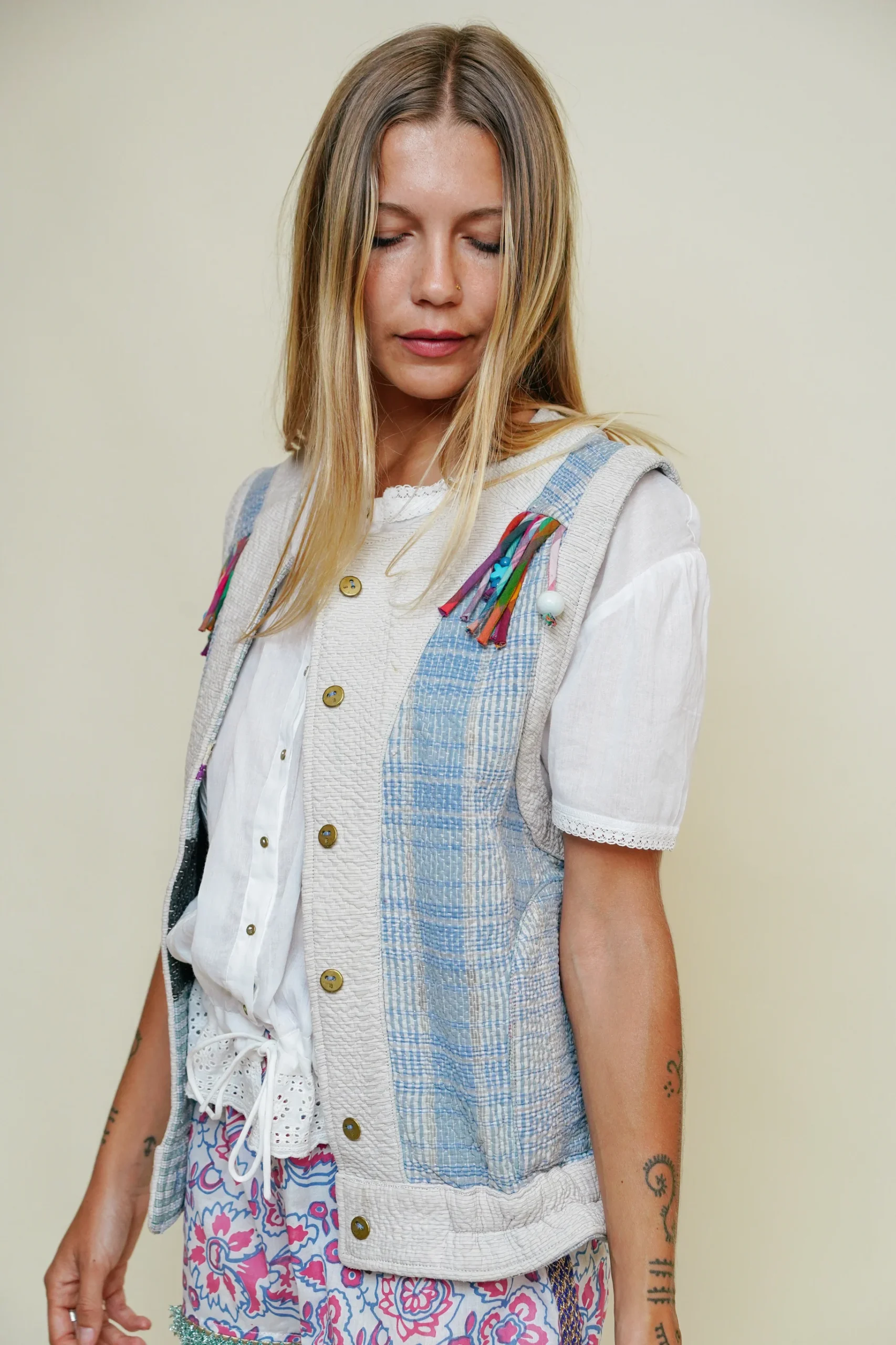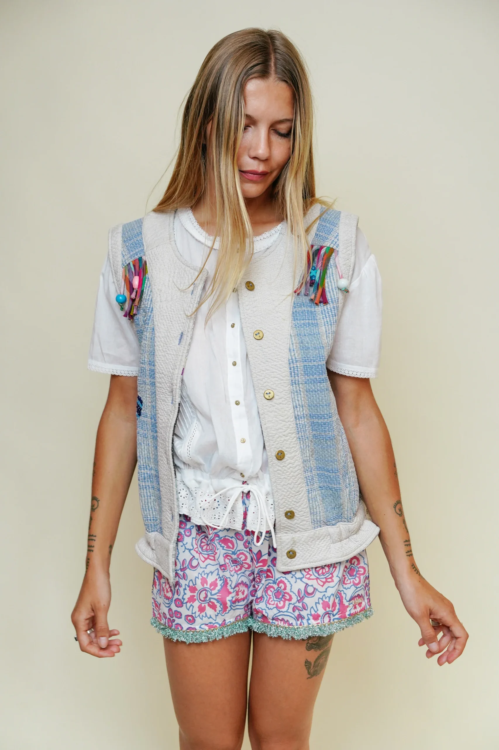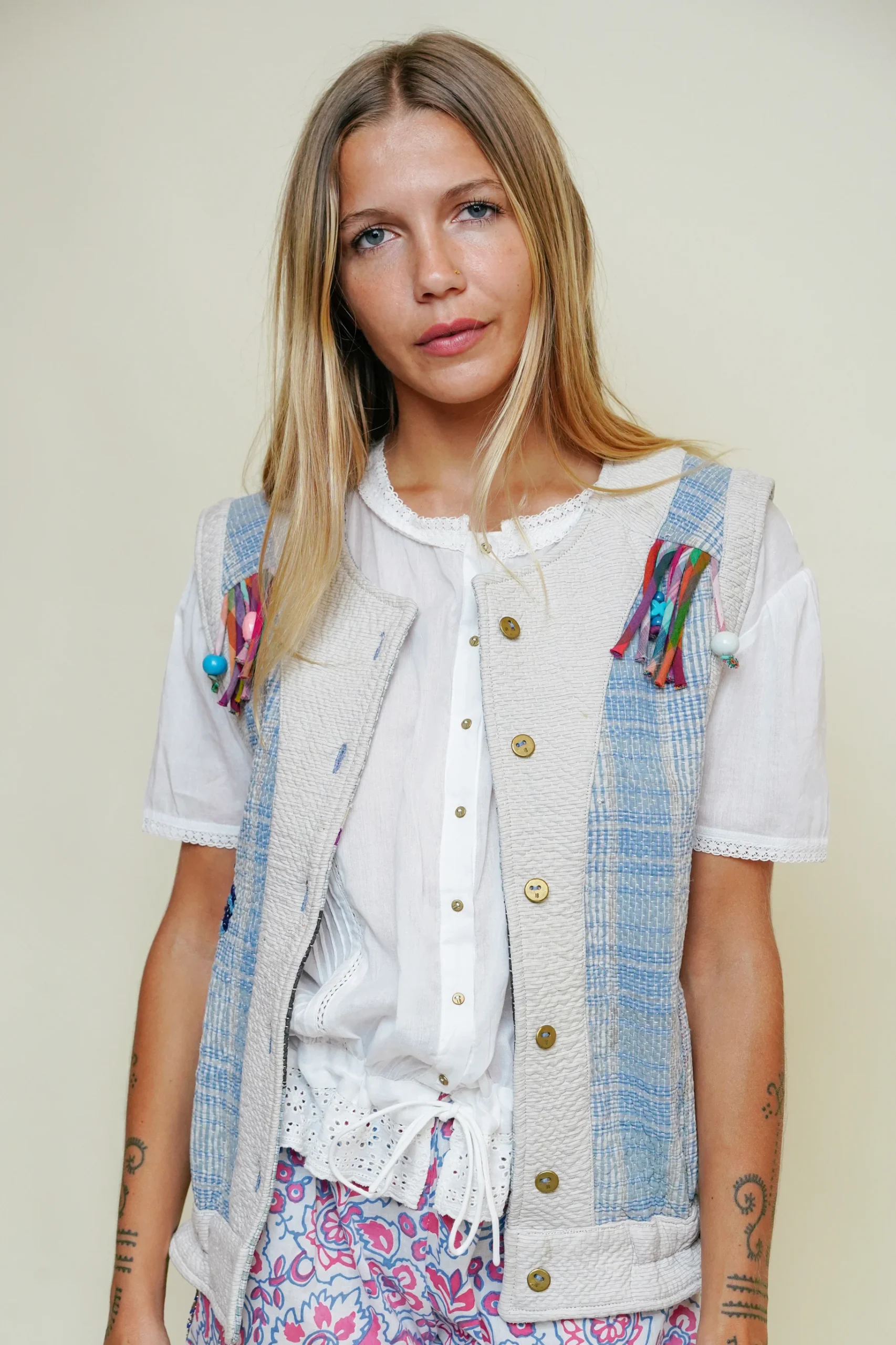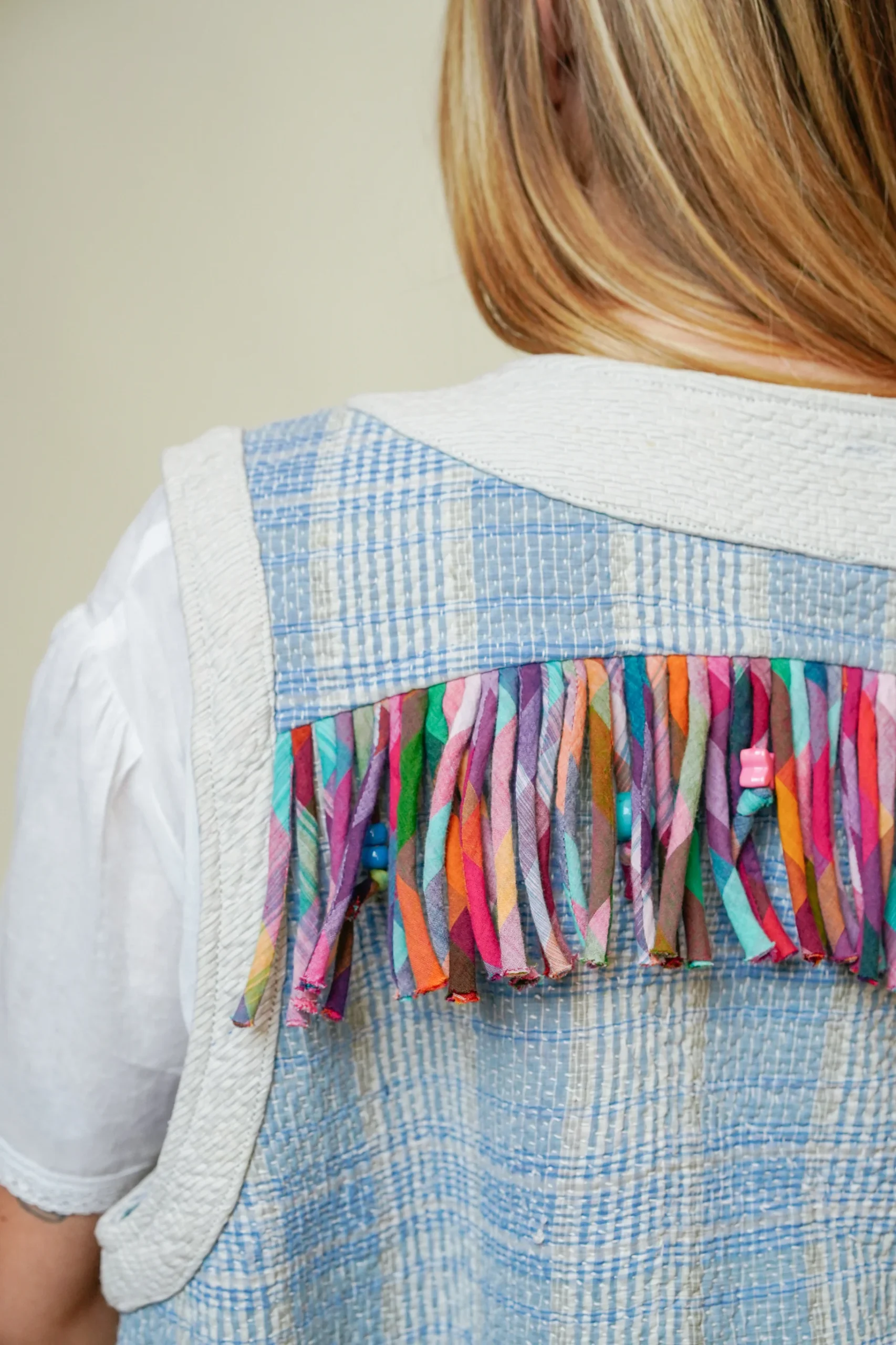 L’ÎLE BLEUE – Gilet Kantha à Franges