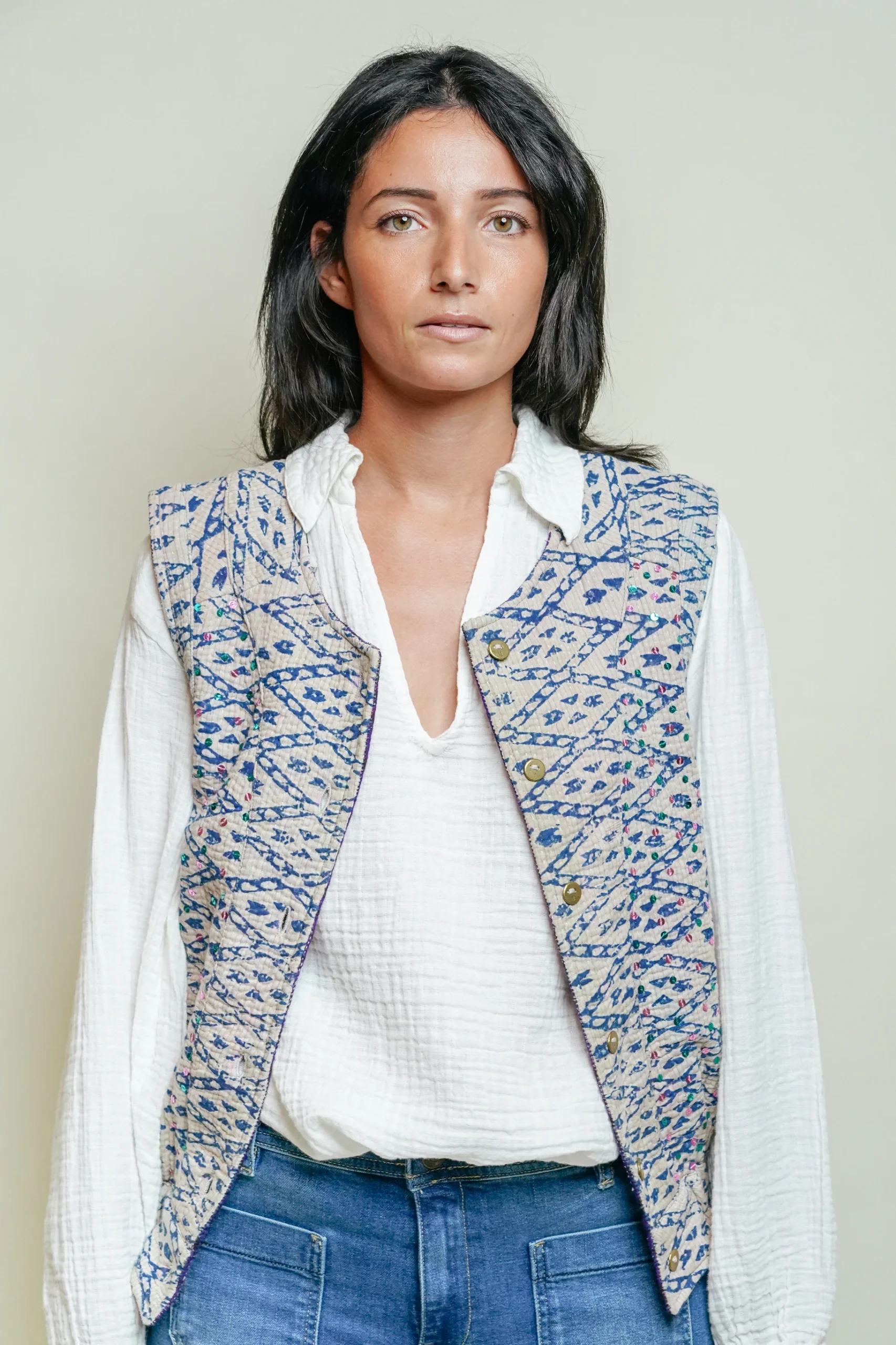 L’ÎLE BLEUE – Gilet Kantha – Sequins