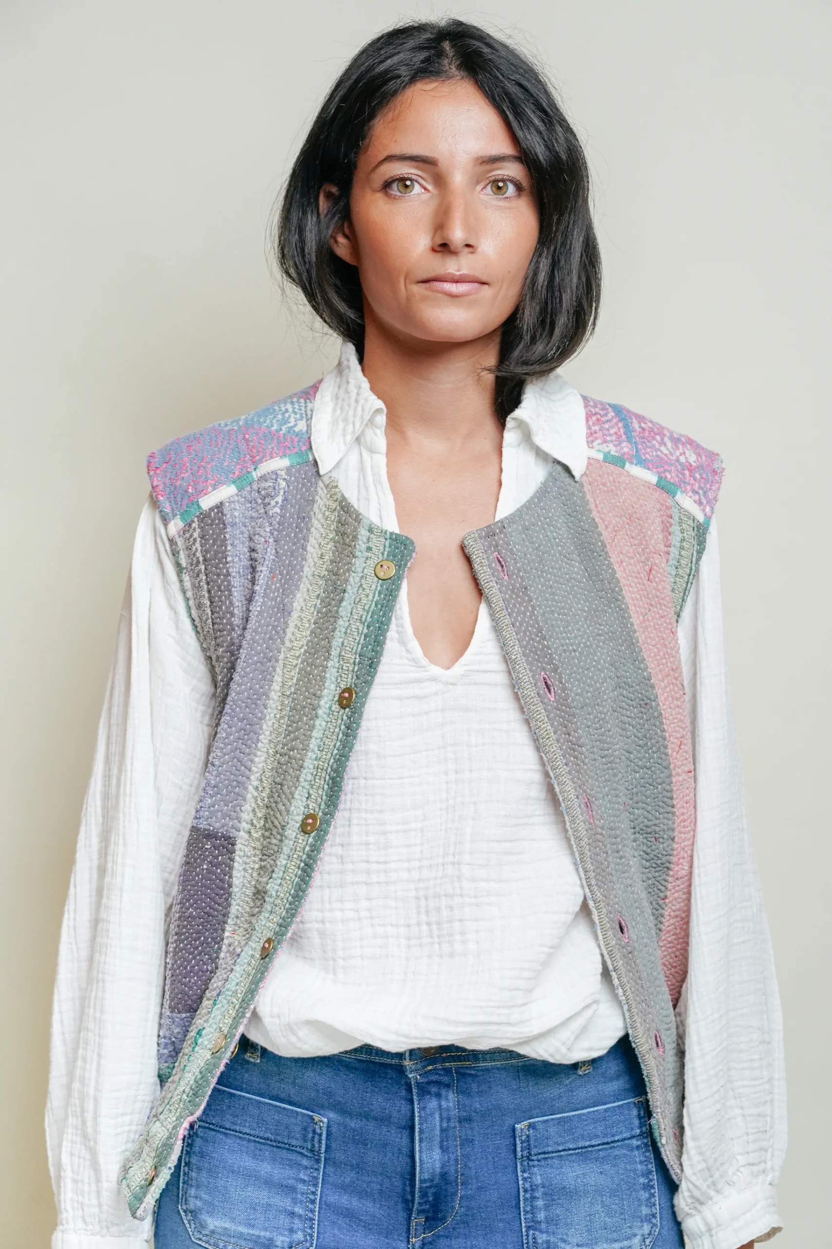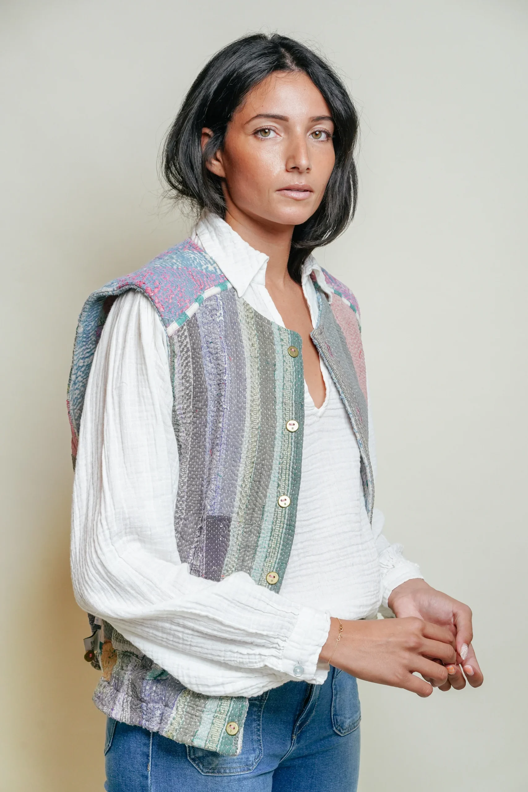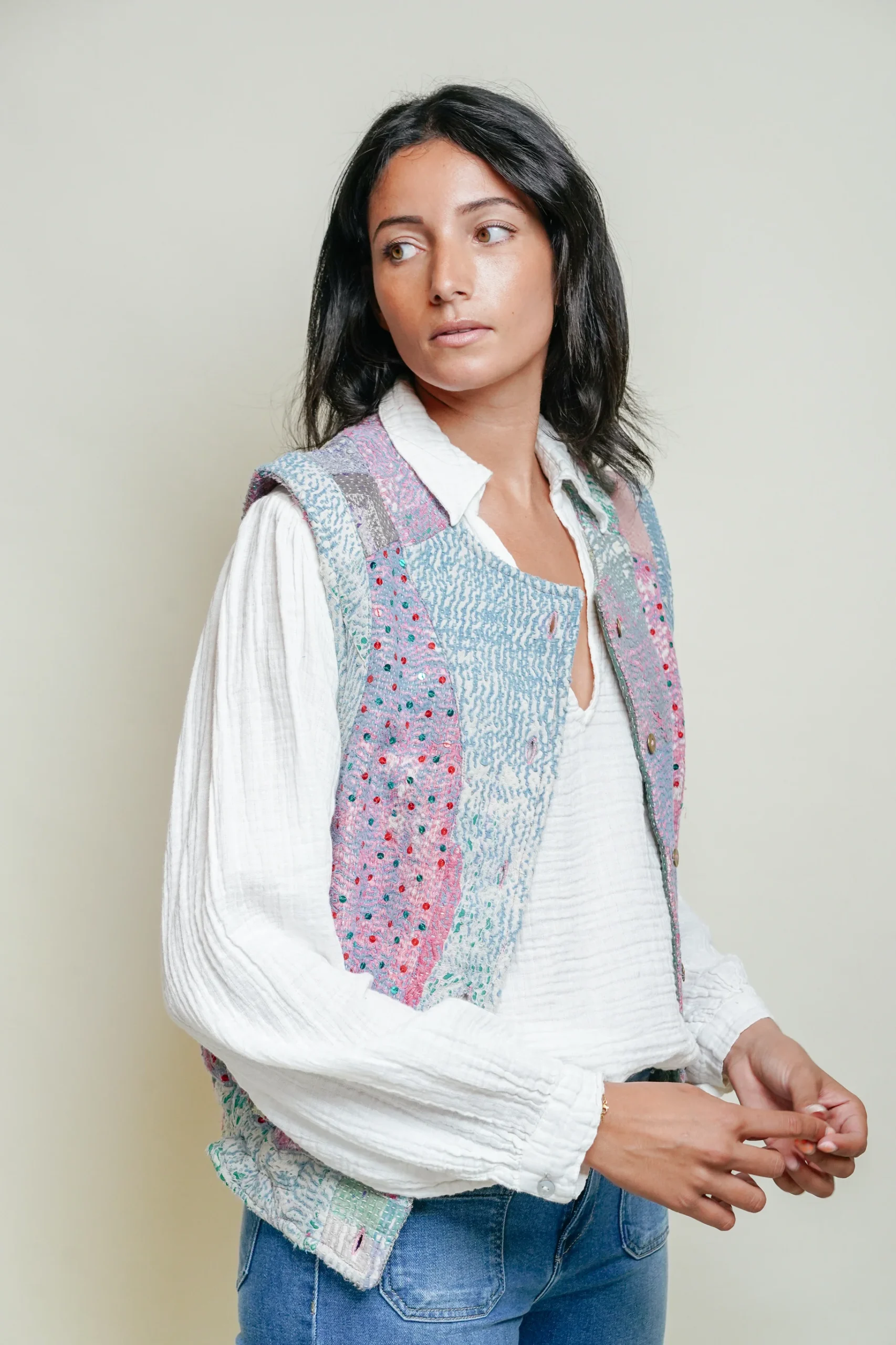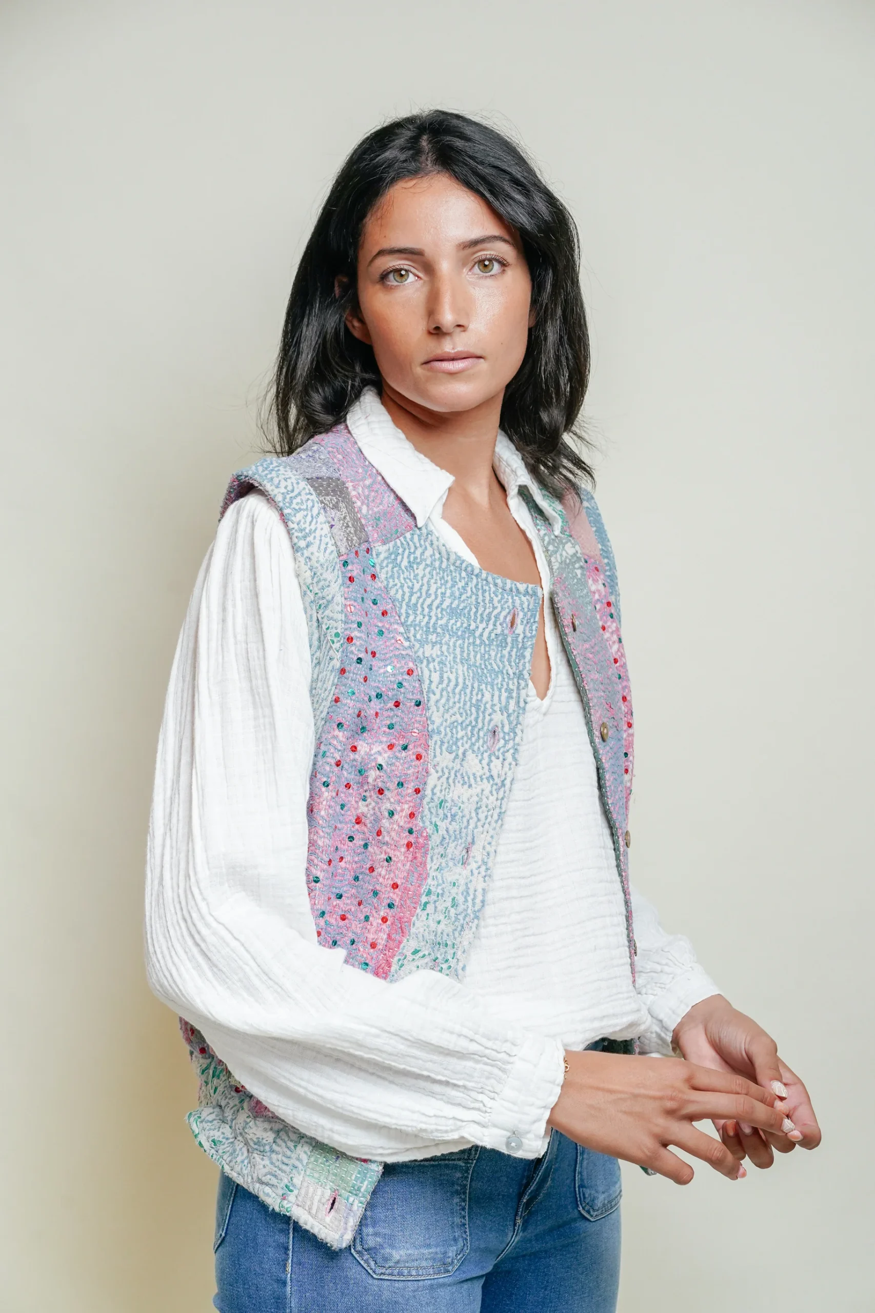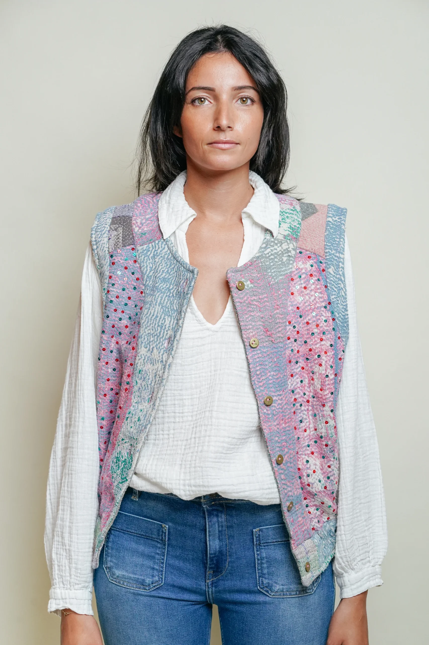 L’ÎLE BLEUE – Gilet Kantha – Sequins