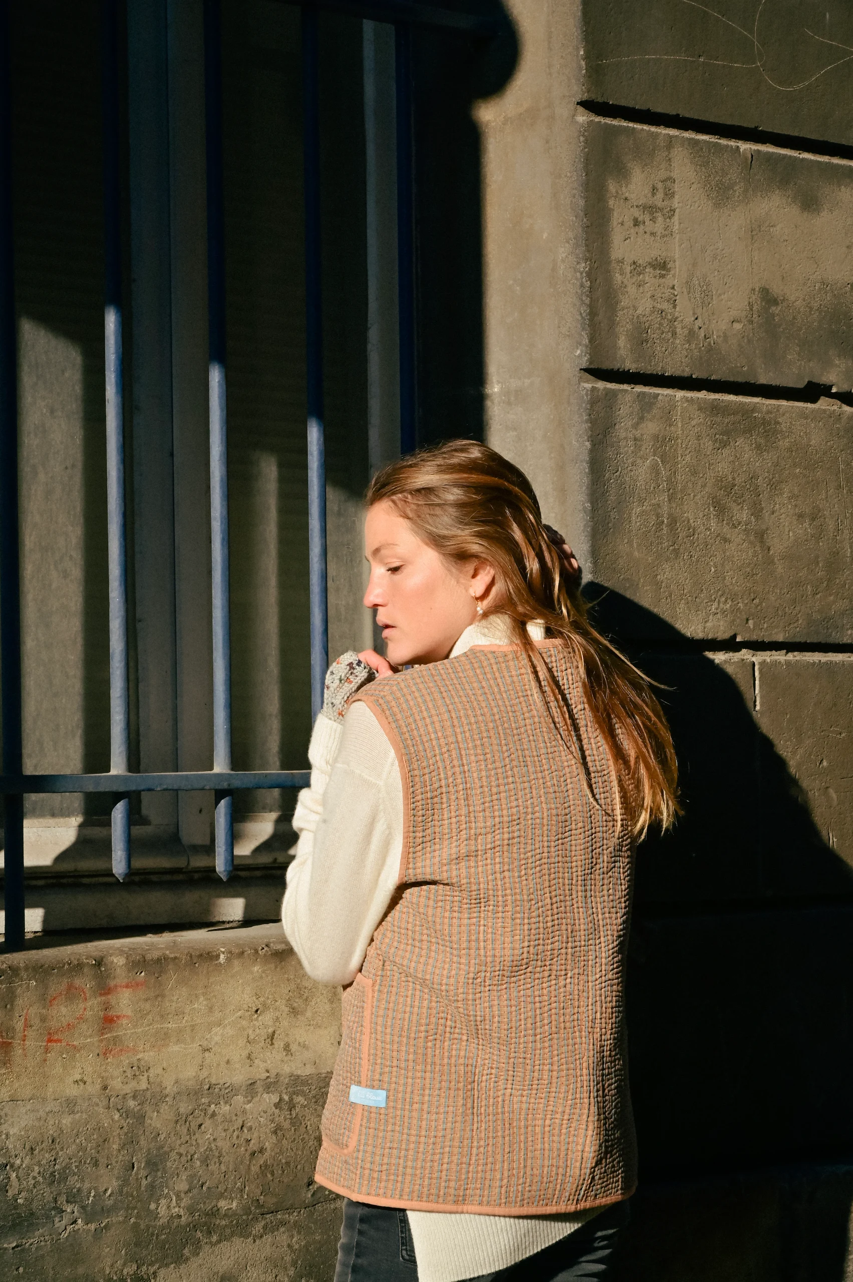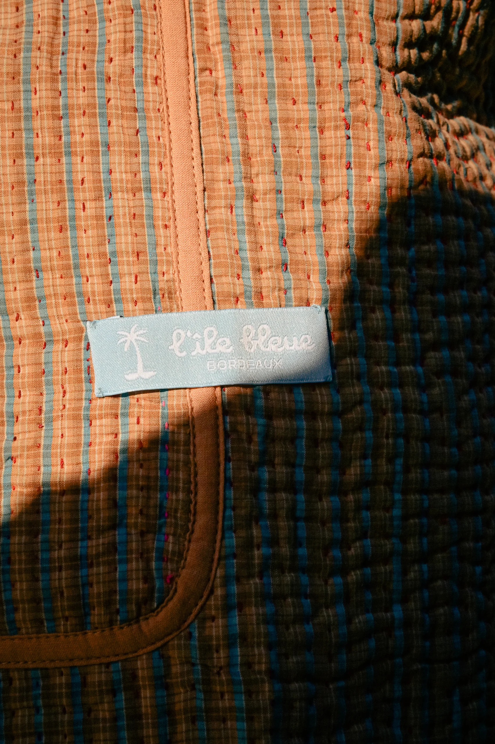 La dernière création L’Île Bleue : le gilet en kantha Arthur.