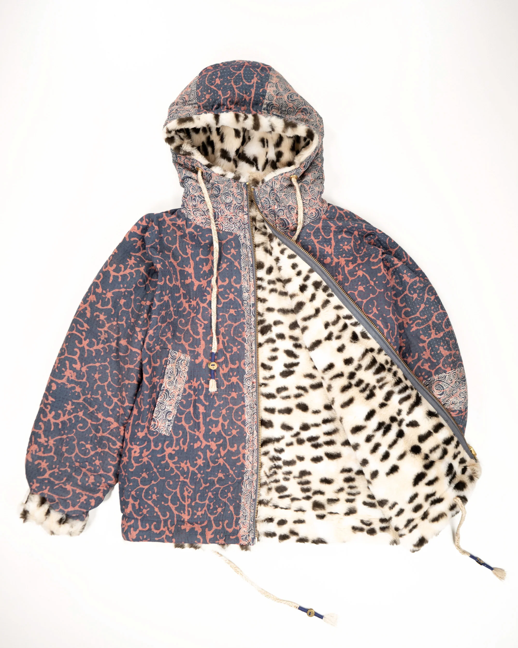 HOODY FOURRÉ LÉOPARD EN KANTHA COULEUR 2