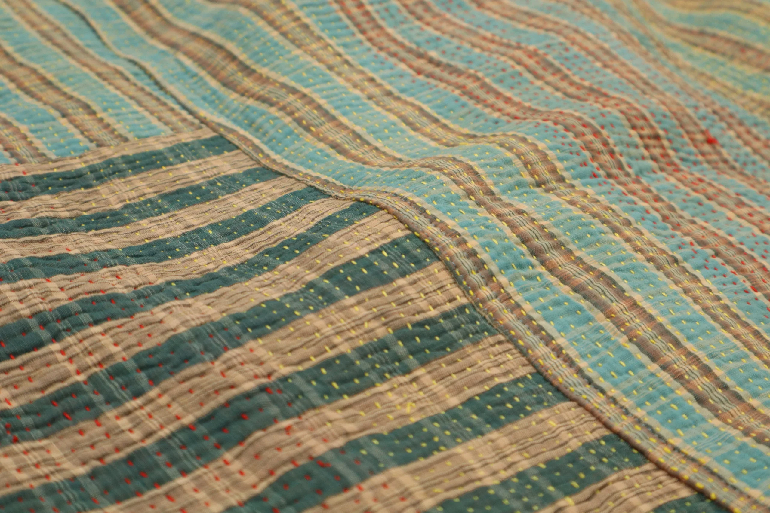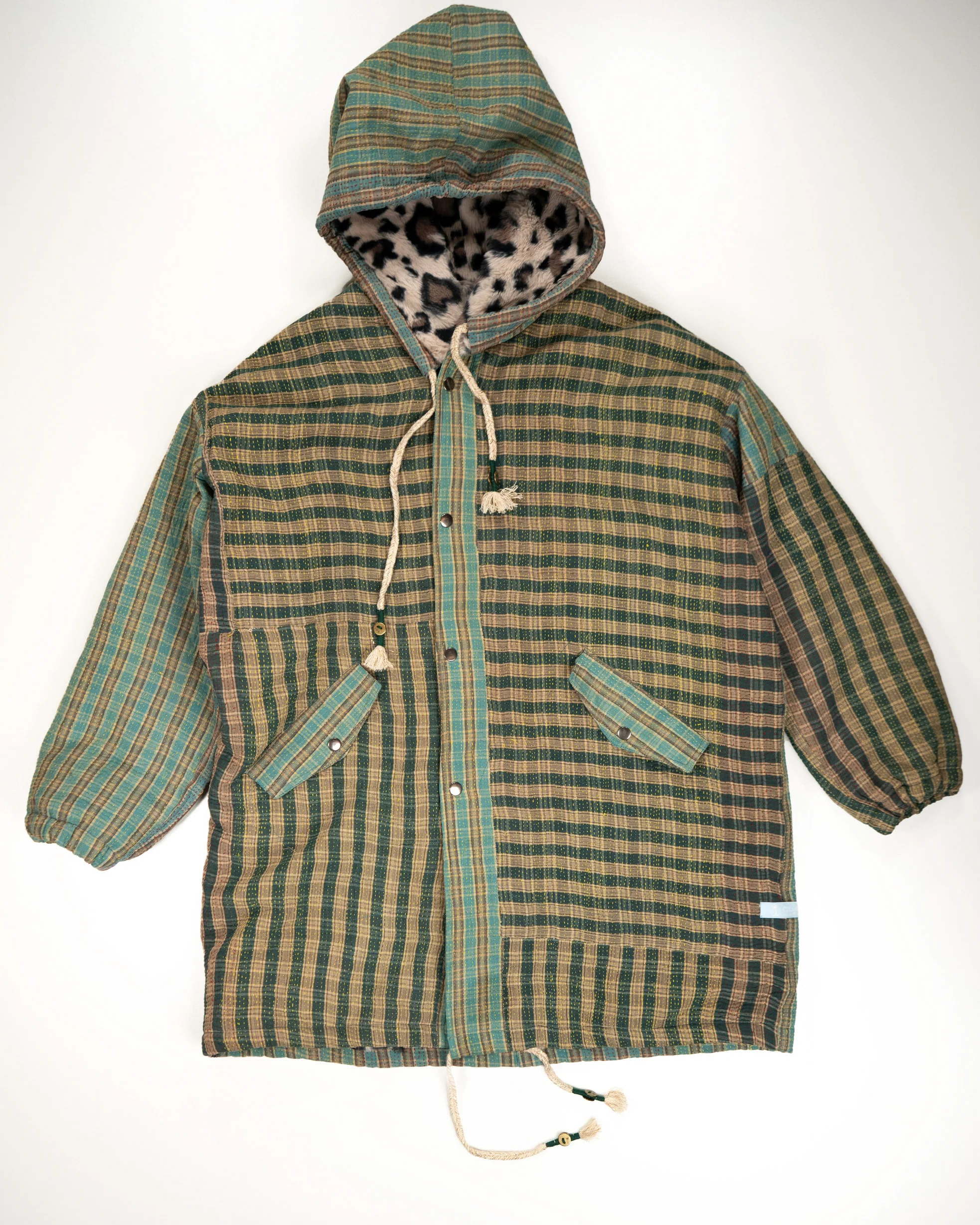 Le manteau Meenu fourré Léopard en Kantha de L’Île Bleue est une pièce unique. Doublé pour plus de chaleur, il protège du froid tout en restant léger et confortable. La capuche enveloppante et les manches ajustées assurent un maintien optimal, et chaque détail reflète le travail artisanal du Kantha. Les motifs léopard apportent caractère et originalité, faisant de ce manteau un vêtement unique et plein de personnalité.