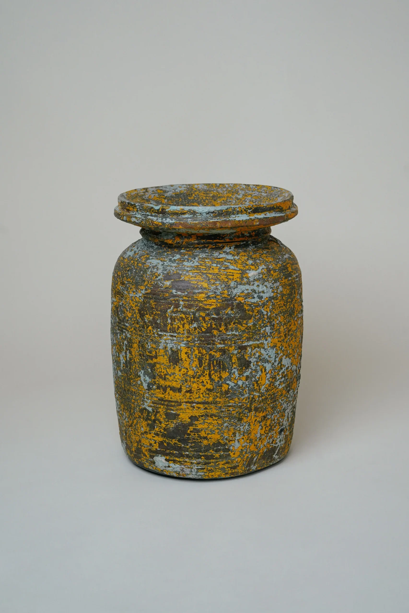 Nos pots en bois d’acacia sont peint à la main à Jodhpur au Rajasthan. Ici, le pot en bois d’acacia est peint dans des nuances de orange avec un effet vintage. Les irrégularité de la pièce lui apportent tout son charme. 26x31cm