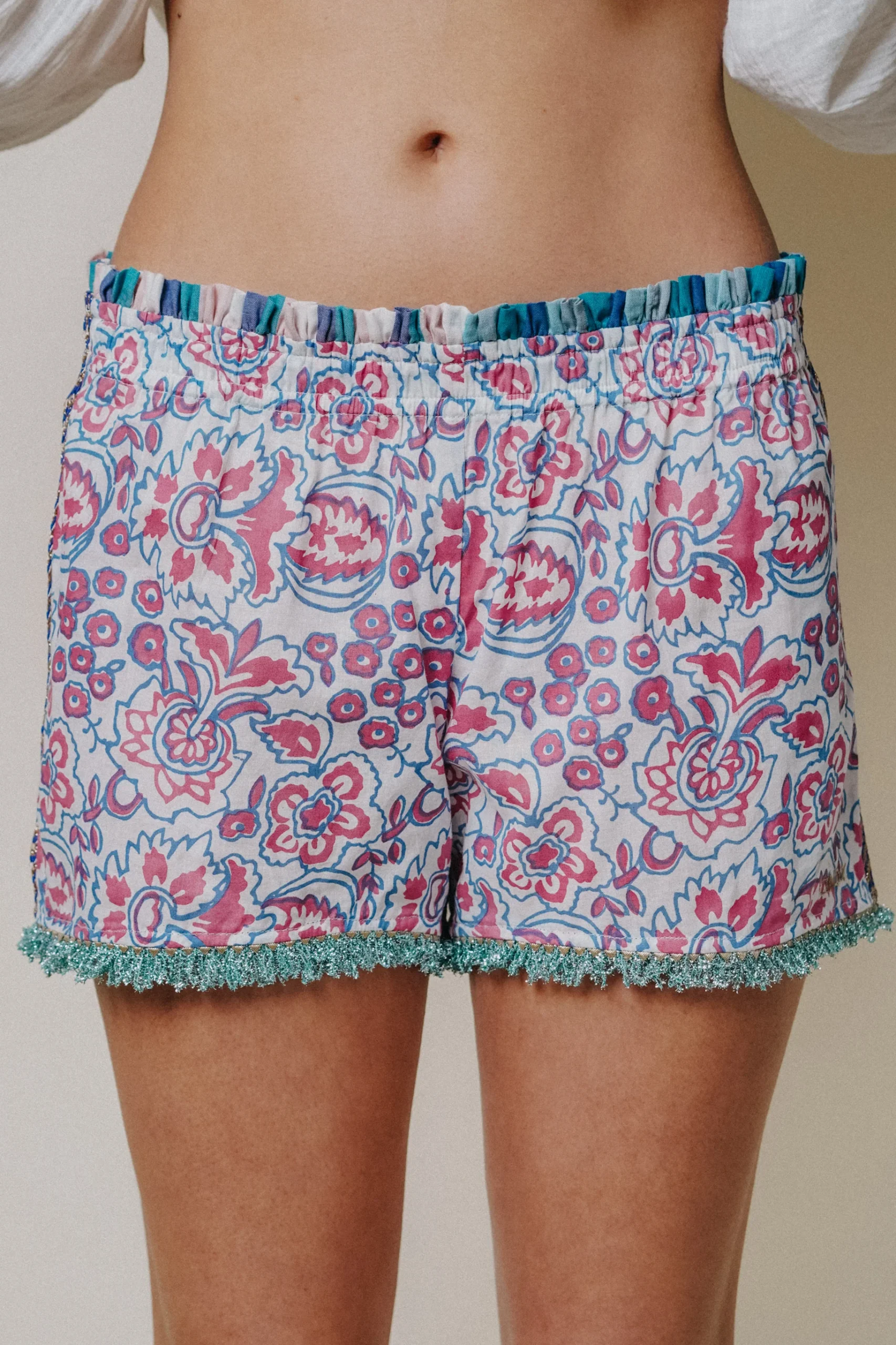 Ici, le short boubou Cindy est confectionné dans le tissu du boubou Divya.