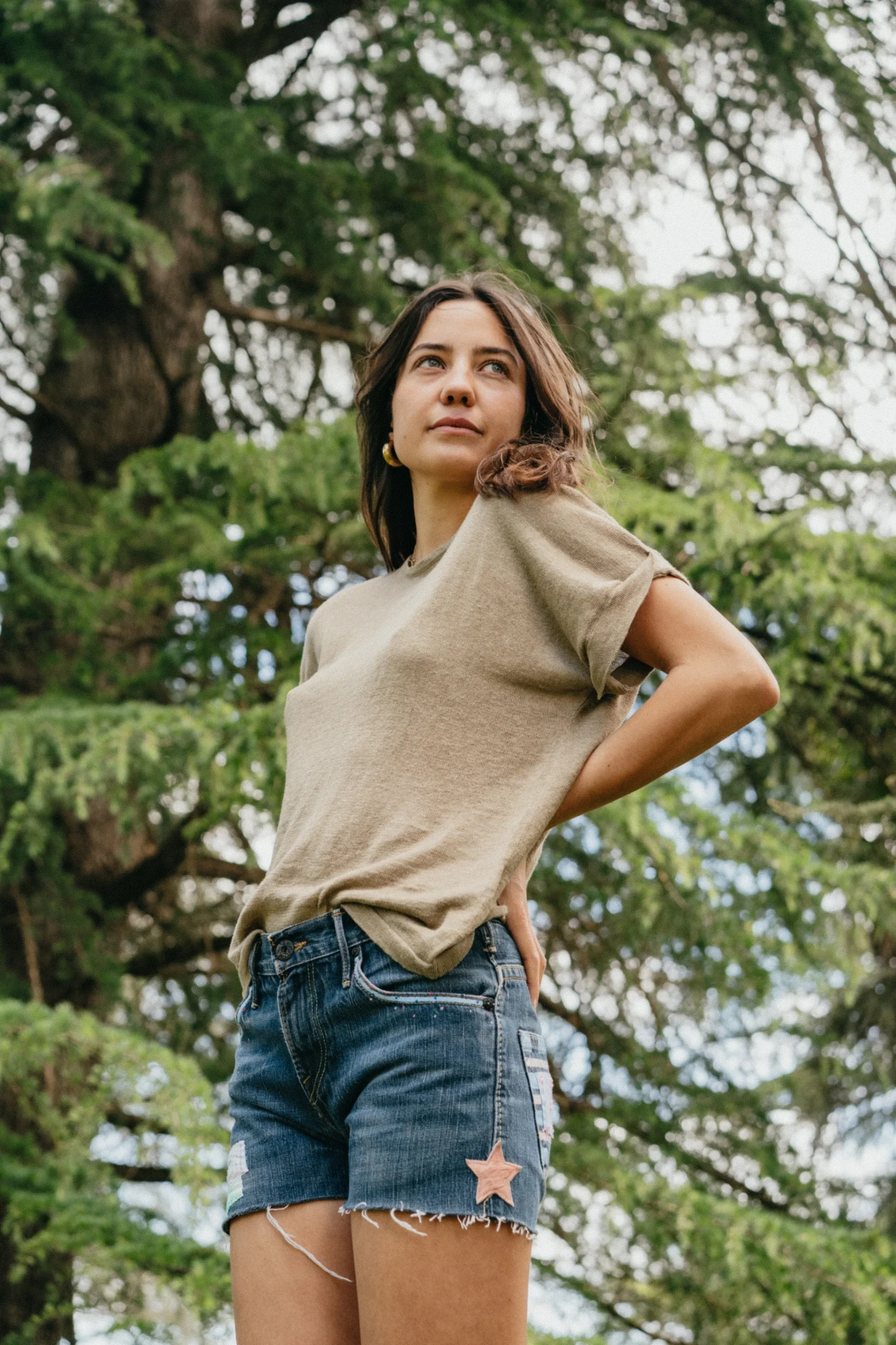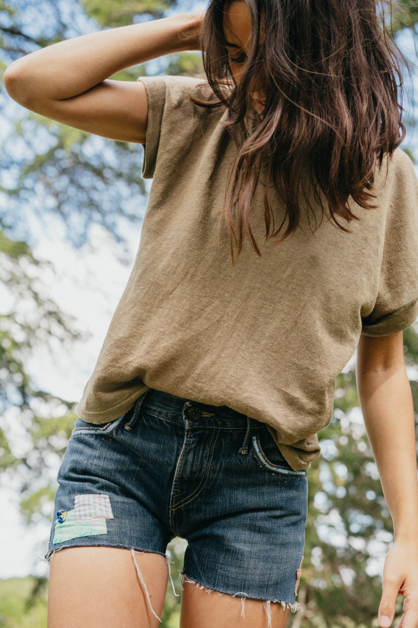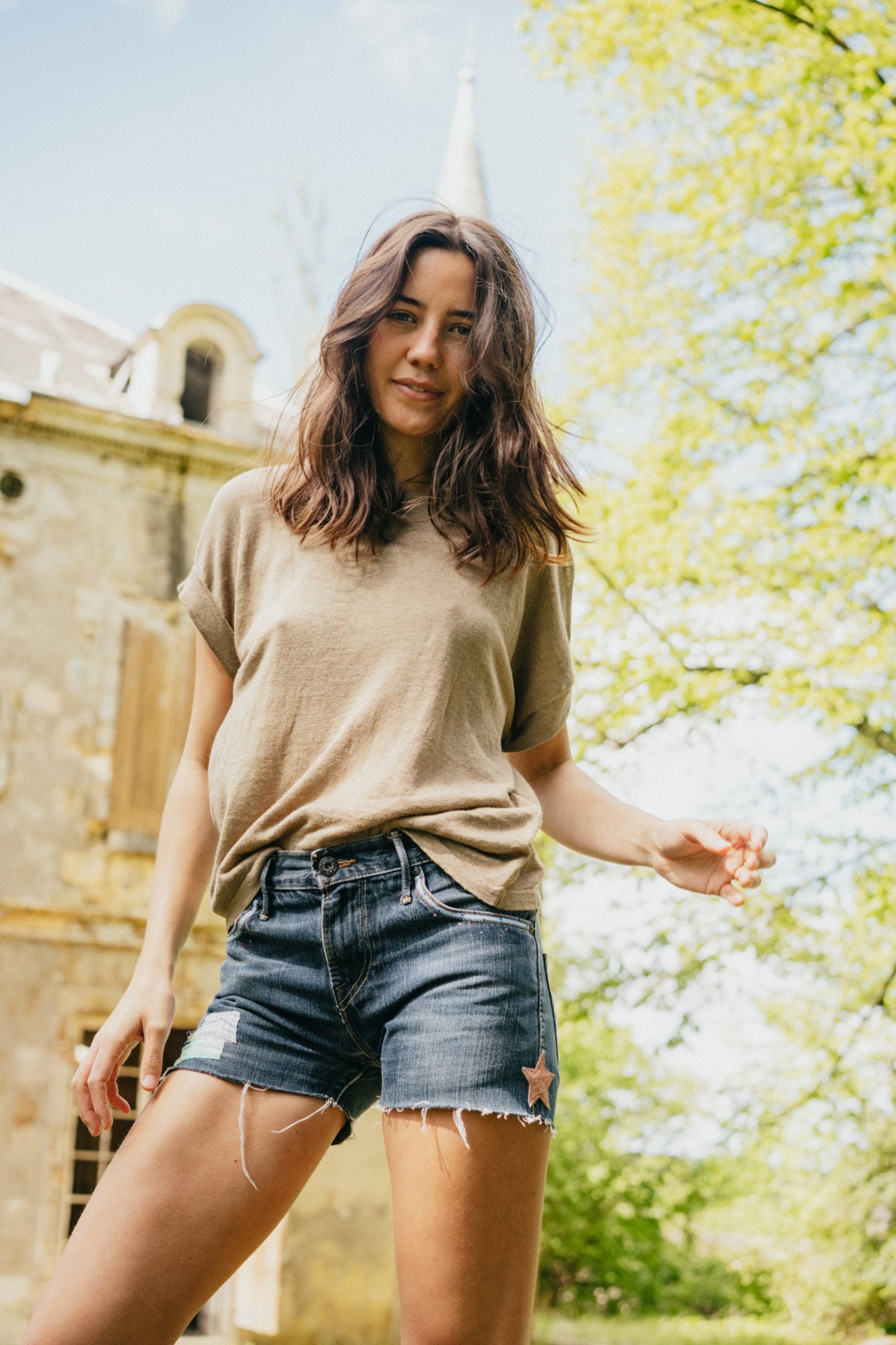 Craquez pour nos shorts en jean customisés avec amour. Chaque short est une pièce unique. Les tailles varient d’un modèle à l’autre. Ici, Solveig porte un 36/38.