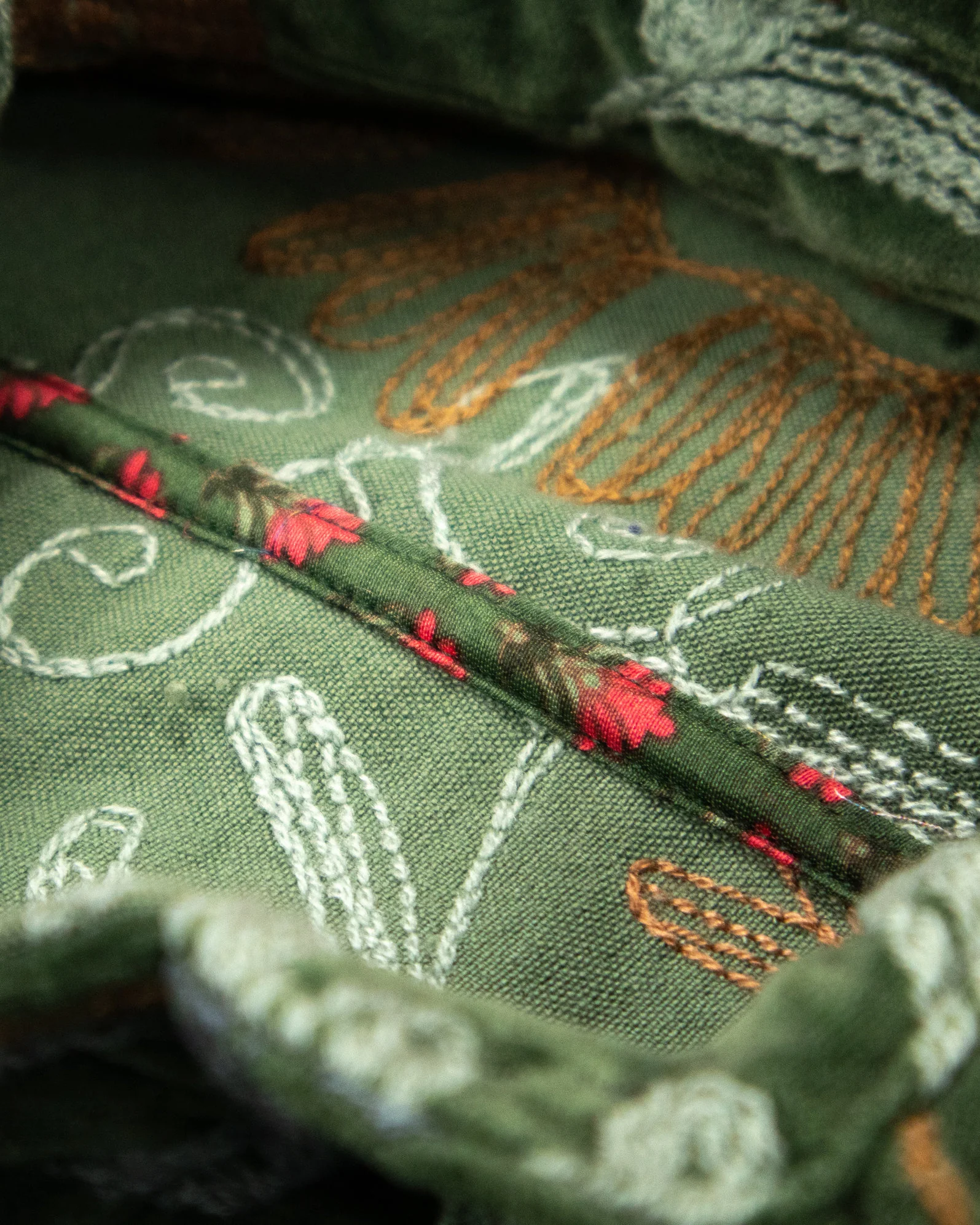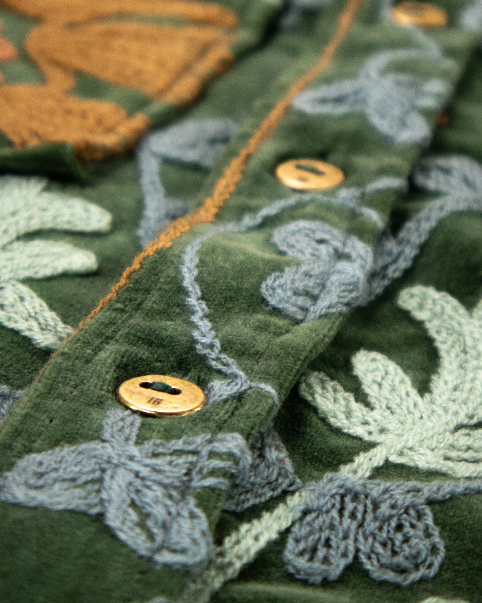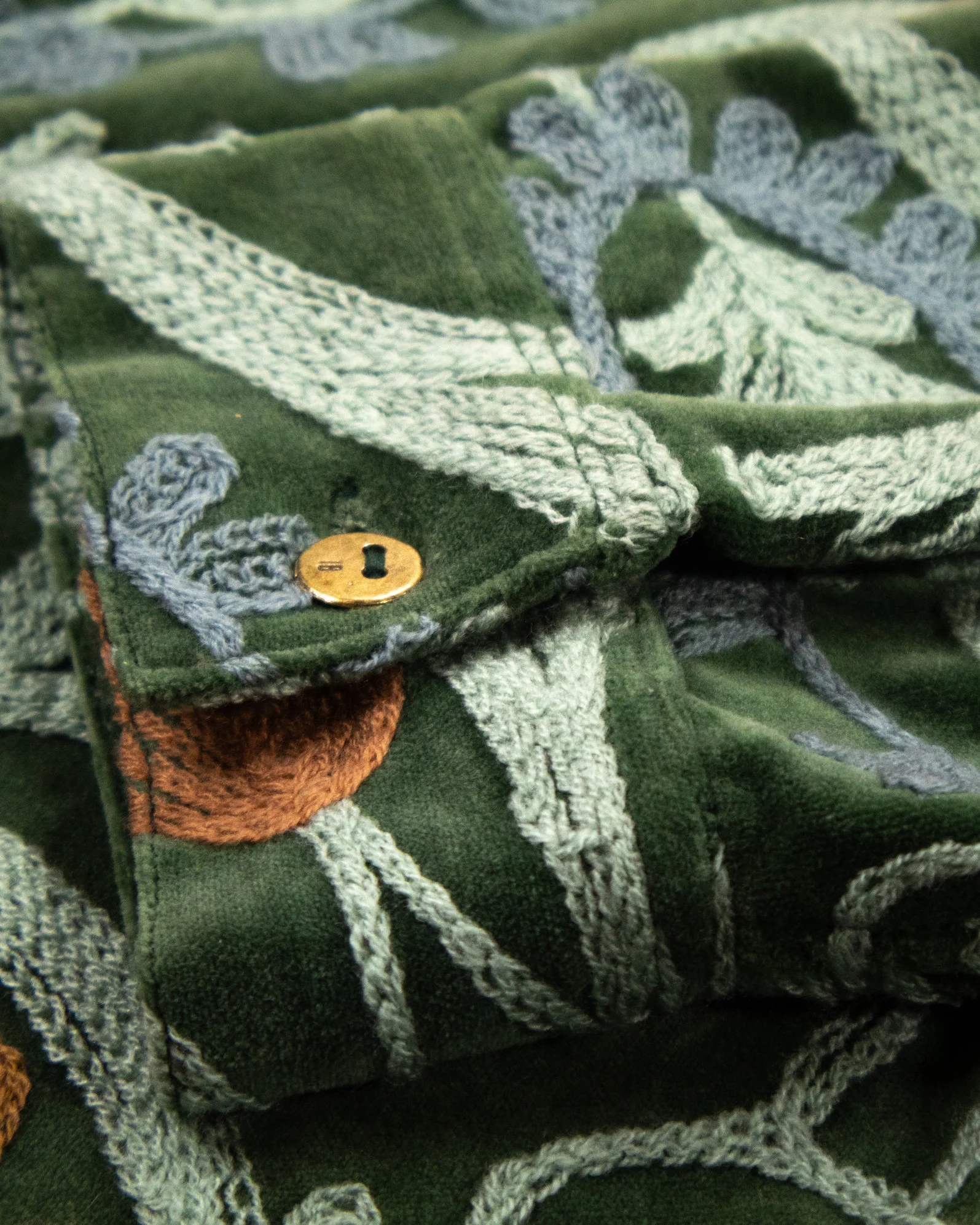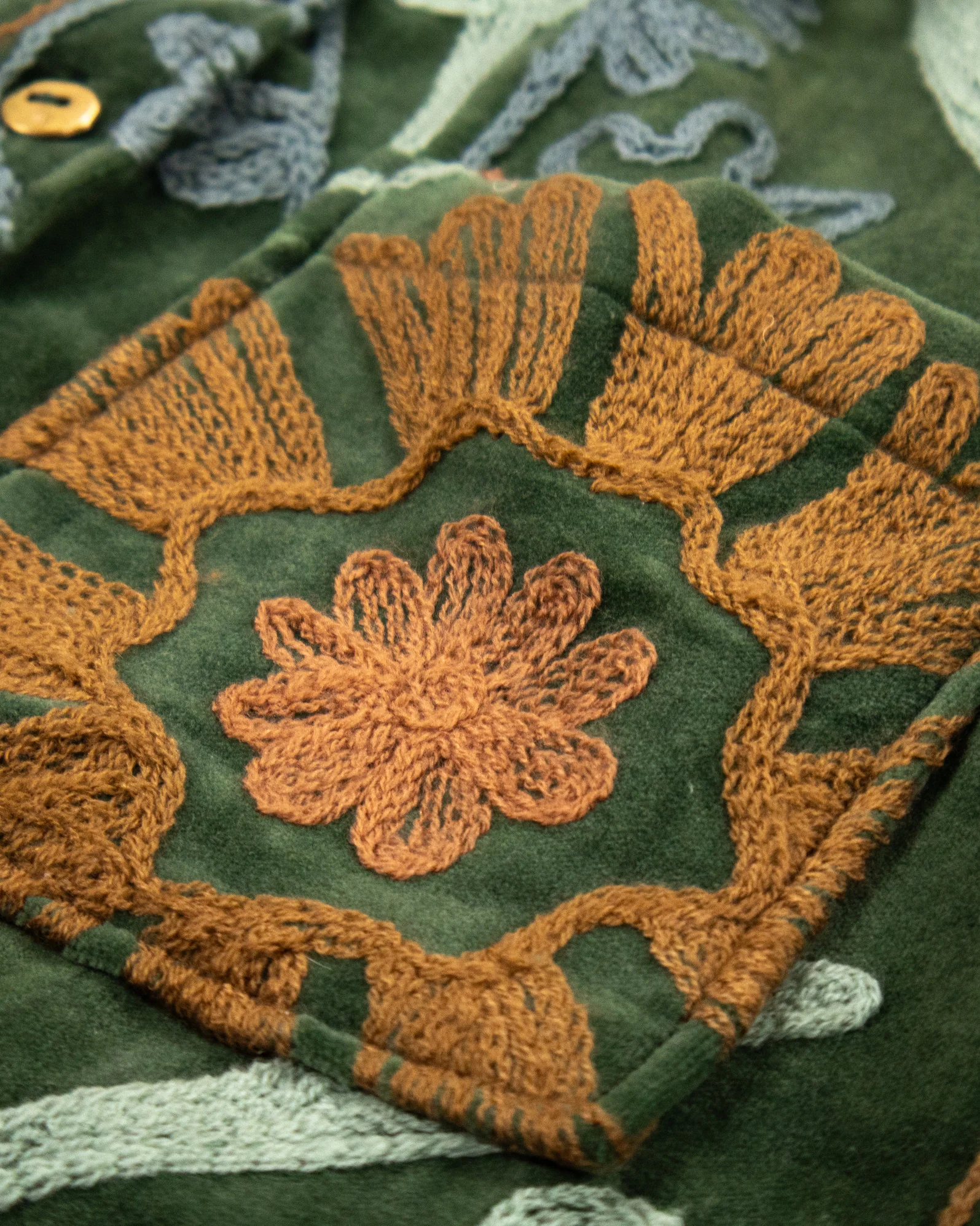 La surchemise Paul Suzani est une pièce unique emblématique de notre collection, alliant esthétique artisanale et confort quotidien. Confectionnée dans un tissu riche en motifs Suzani, elle se distingue par ses couleurs vibrantes et son caractère unique.