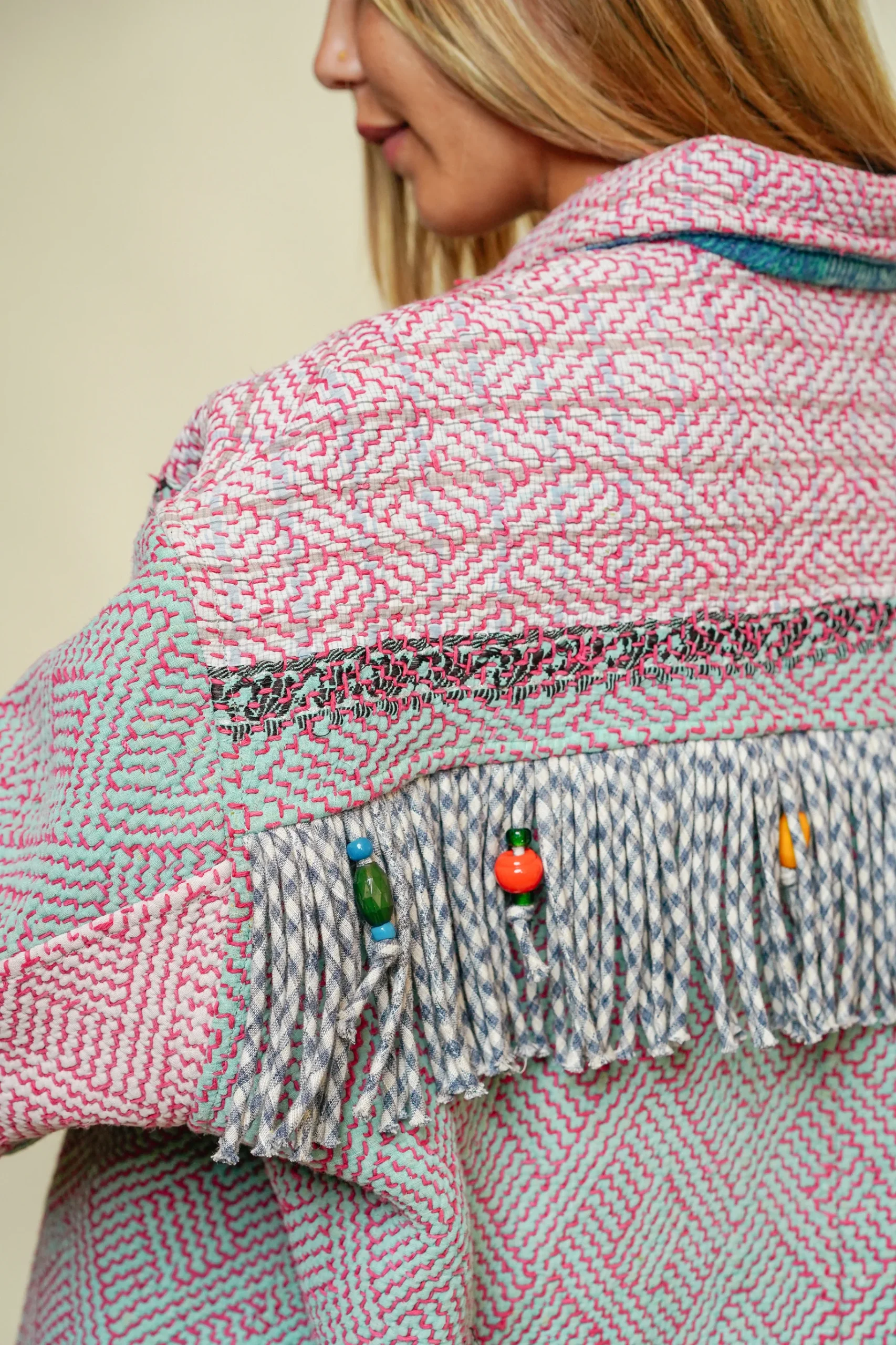 L’ÎLE BLEUE – Veste Kantha – Franges