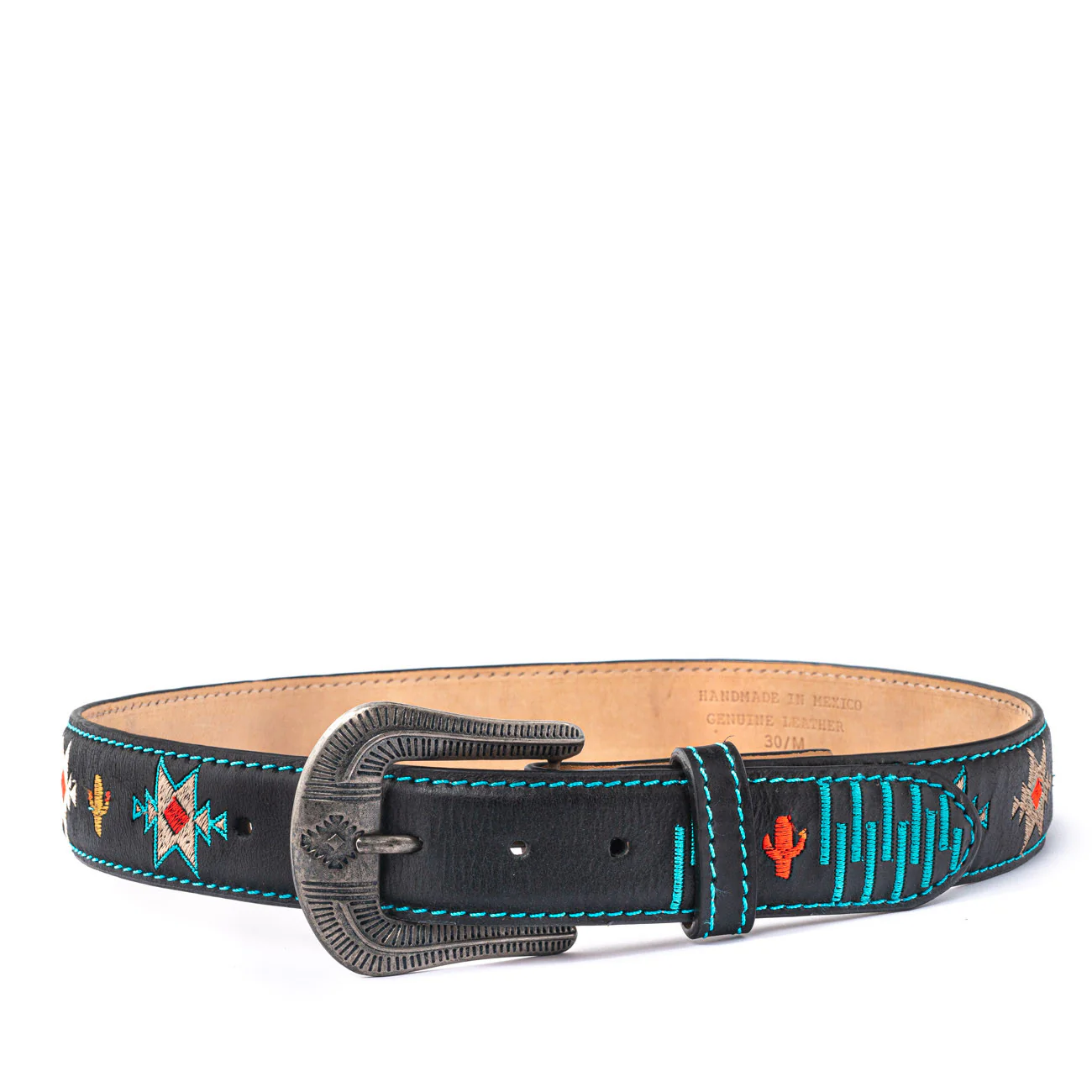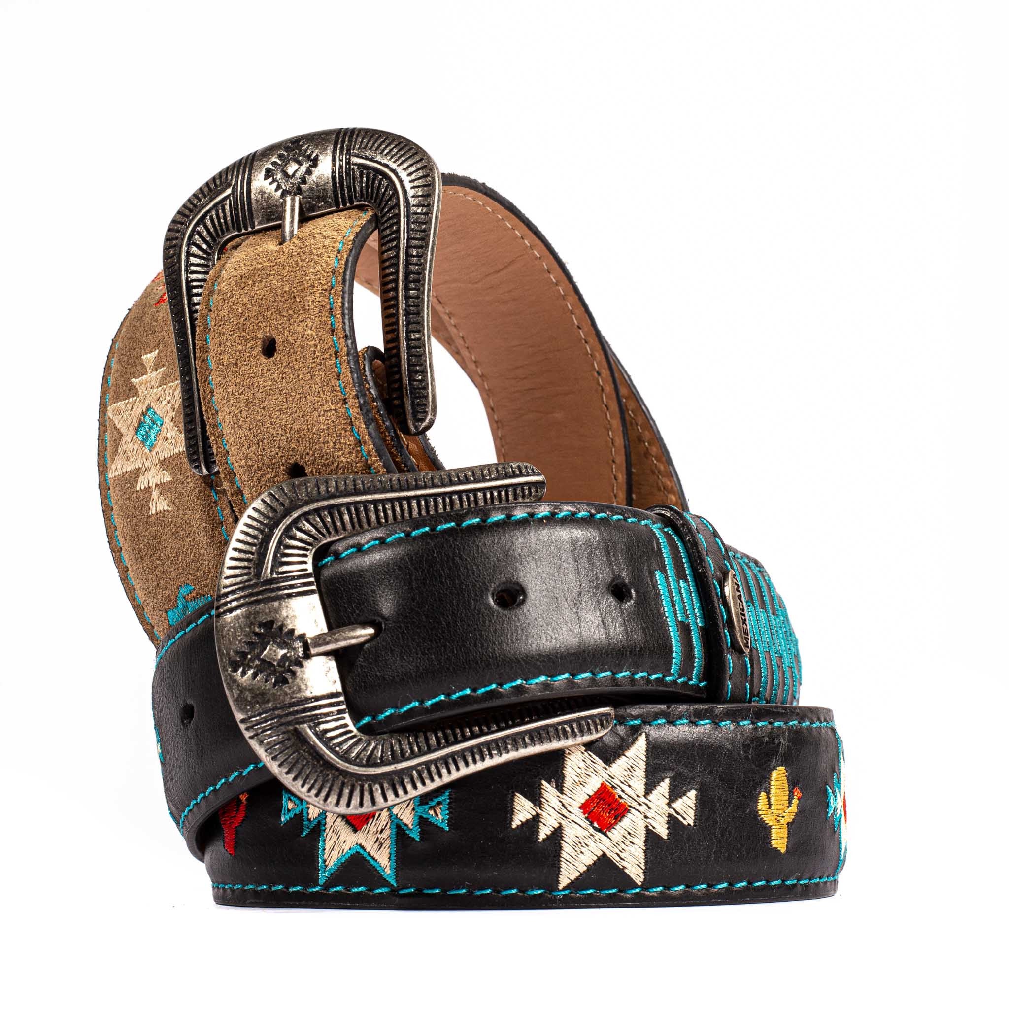 CEINTURE EN CUIR AVEC BRODERIE NAVAJO 100% Cuir de vachette Doublure cuir Fabriqué à la main au Mexique Boucle amovible