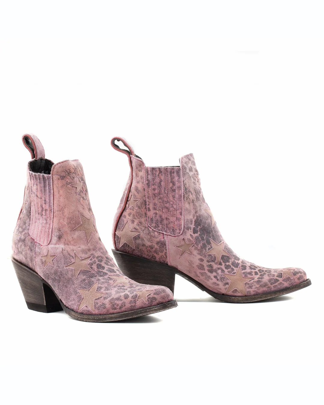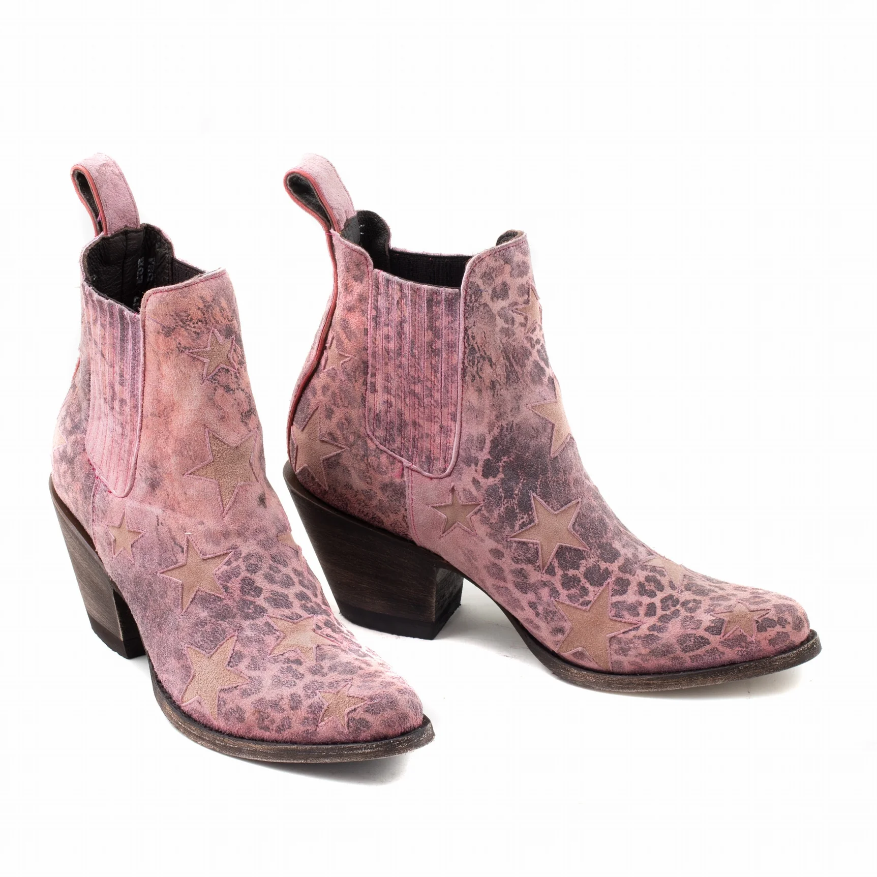 On vous fait voir la vie en rose avec les Circus Pink à bout pointu imprimés léopard. Des étoiles viennent se superposer au léopard et des élastiques recouverts de cuir vous apportent un confort optimal. Le talon fait une hauteur totale de 6,5 cm et les boots sont en 100% cuir de vachette suédé. Fait […]