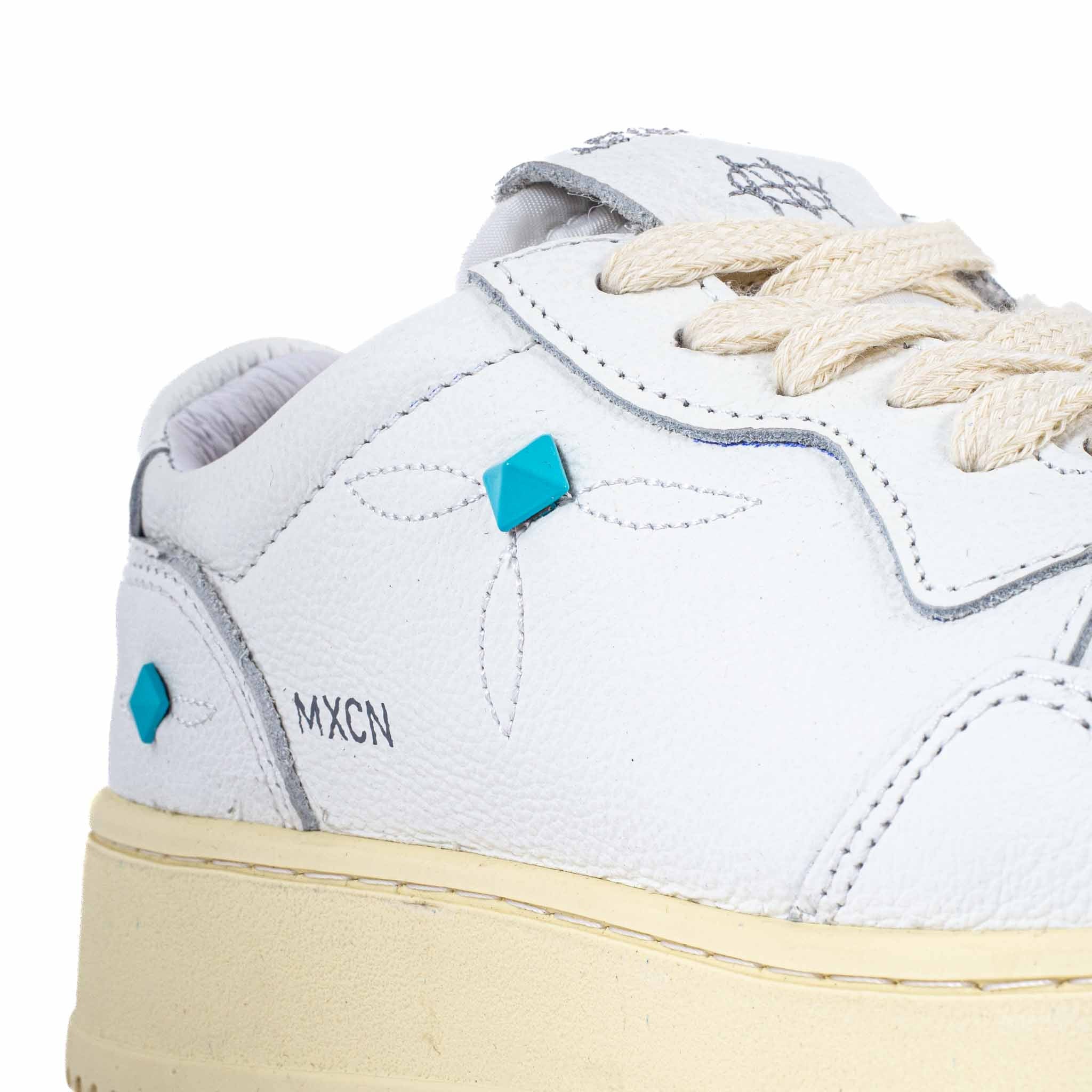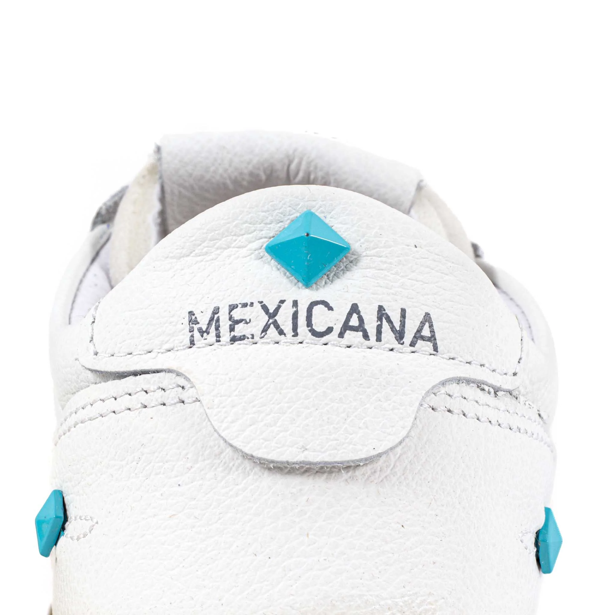 Fabriquées à la main au Mexique, ces sneakers incarnent l’esprit libre de la marque Mexicana. Conçues en cuir blanc souple, elles sont rehaussées de détails turquoise en forme de clous signature et de broderies discrètes évoquant nos motifs traditionnels. La semelle beige légèrement patinée donne une allure vintage, tout en assurant un confort optimal. À mi-chemin entre héritage et modernité, ces sneakers sont pensées pour celles et ceux qui aiment marcher avec style, sans jamais renier leur originalité.