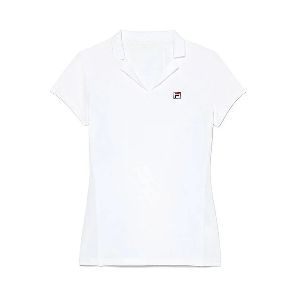 Le polo à manches courtes Fila Essentials a un col en V avec col en tricot côtelé, des mancherons, des panneaux en tissu maillé ton sur ton respirant sur les côtés, une extensibilité dans les 4 sens, un confort qui évacue l’humidité et un logo patch F-box sur la manche gauche.