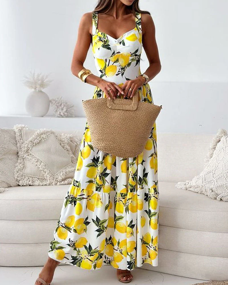 Sabina | Robe Maxi d’Été Fraîche à Imprimé Citron pour Femme