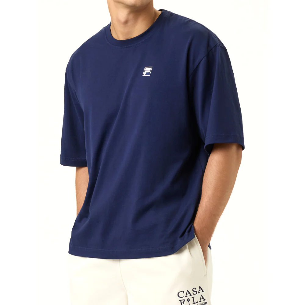 Sportif devant, country club derrière. Adoptez la vita bella avec ce t-shirt à col côtelé CASA FILA, doté d’un F-box classique sur la poitrine gauche et d’un motif de raquette dans le dos pour une déclaration audacieuse.