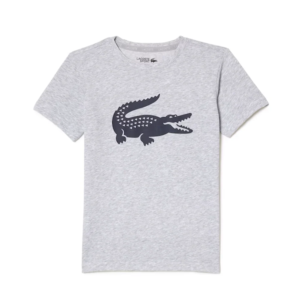 Un t-shirt spécialement conçu pour les jeunes joueurs par Lacoste, expert du tennis depuis 1933. Confectionné en jersey technique pour plus de confort et de liberté de mouvement, avec la technologie Ultra Dry pour évacuer l’humidité. Et un imprimé crocodile XL emblématique pour un style Lacoste signature sur tous les courts.